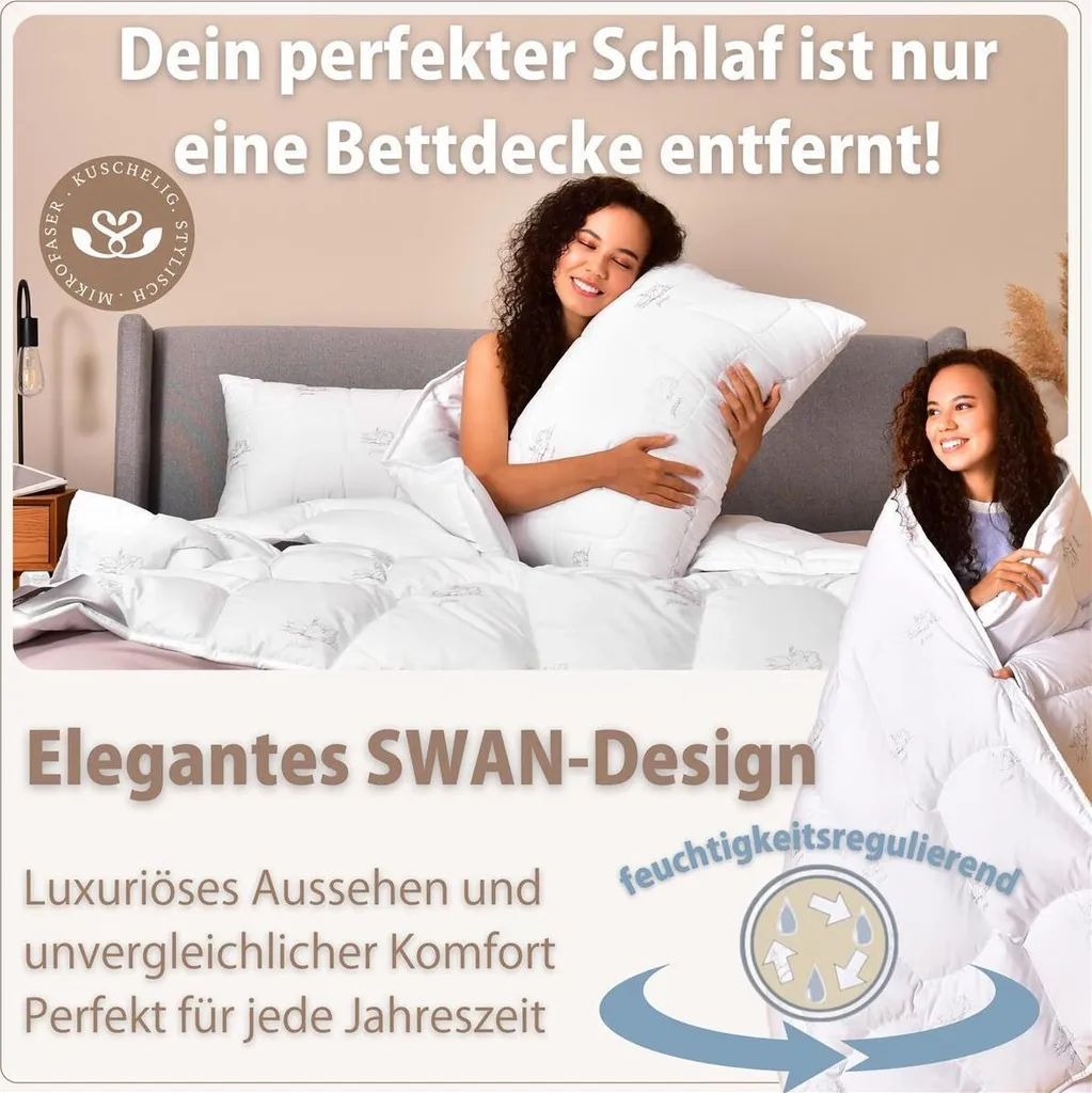 - Сертификаты:Пуховое одеяло SWAN сертифицированоÖko-Tex Standard 100. и гарантированно не содержит вредных веществ, что делает его идеальным выбором для аллергиков и людей с чувствительной кожей.