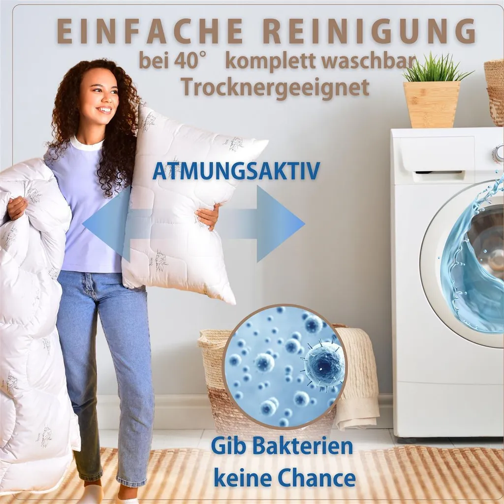 - Уход: За этим пуховым одеялом легко ухаживать, его можно стирать в машине. 40°C и сушить в сушильном барабане. Он сохраняет свои размеры и остается очень мягким даже после многочисленных стирок.