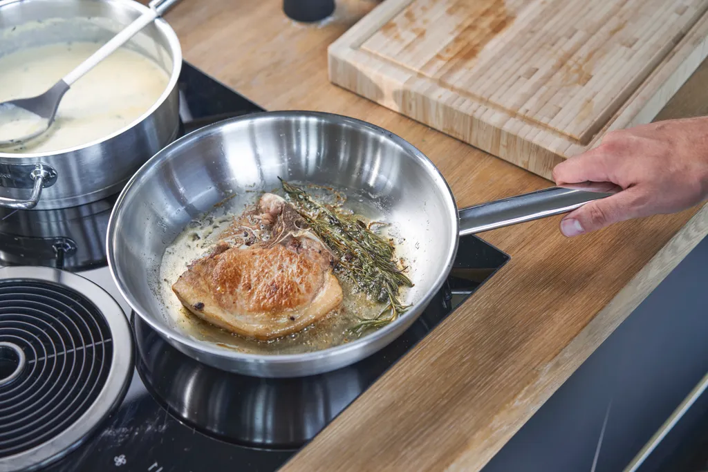 Мы уверены: владельцам натуральных домов понравится высококачественная кухонная утварь серии ZWILLING Pro, потому что эта серия устанавливает стандарты качества, разнообразия и, прежде всего, дизайна. На этой стальной сковороде всегда получаются превосходные блюда из рыбы, яиц и овощей. Покрытие сковороды состоит из трех слоев и отличается особой прочностью и долговечностью. Благодаря прочному алюминиевому сердечнику дна с покрытием SIGMA сковорода из нержавеющей стали быстро нагревается. Тепло распределяется по краю очень равномерно. Вы предпочитаете индукционную плиту при приготовлении пищи? Без проблем. Сковороду можно использовать на плитах любого типа, ее можно мыть в посудомоечной машине. Это означает, что у вас меньше работы и вы можете полностью сконцентрироваться на гостях. ОСОБЕННОСТИ Пол SIGMA Clad отличается быстрым и равномерным распределением тепла вплоть до самого края. Высококачественная нержавеющая сталь 18/10 чрезвычайно гигиенична, долговечна и устойчива к царапинам. Особо широкий край сосуда. Прочная ручка из нержавеющей стали долгое время остается прохладной и обеспечивает комфортную работу. Подходит для всех типов плит, включая индукционные. Подходит для приготовления вкусных блюд в духовке (до 230°С). РАЗМЕРЫ Диаметр: 24 см, диаметр дна: 18 см, высота: 7,7 см. Длина: 47,5 см. Ширина: 25,8 см. Толщина дна: 0,3 см. Вес: 1.