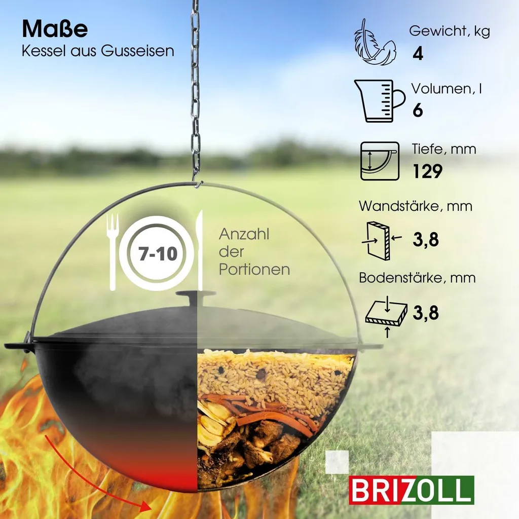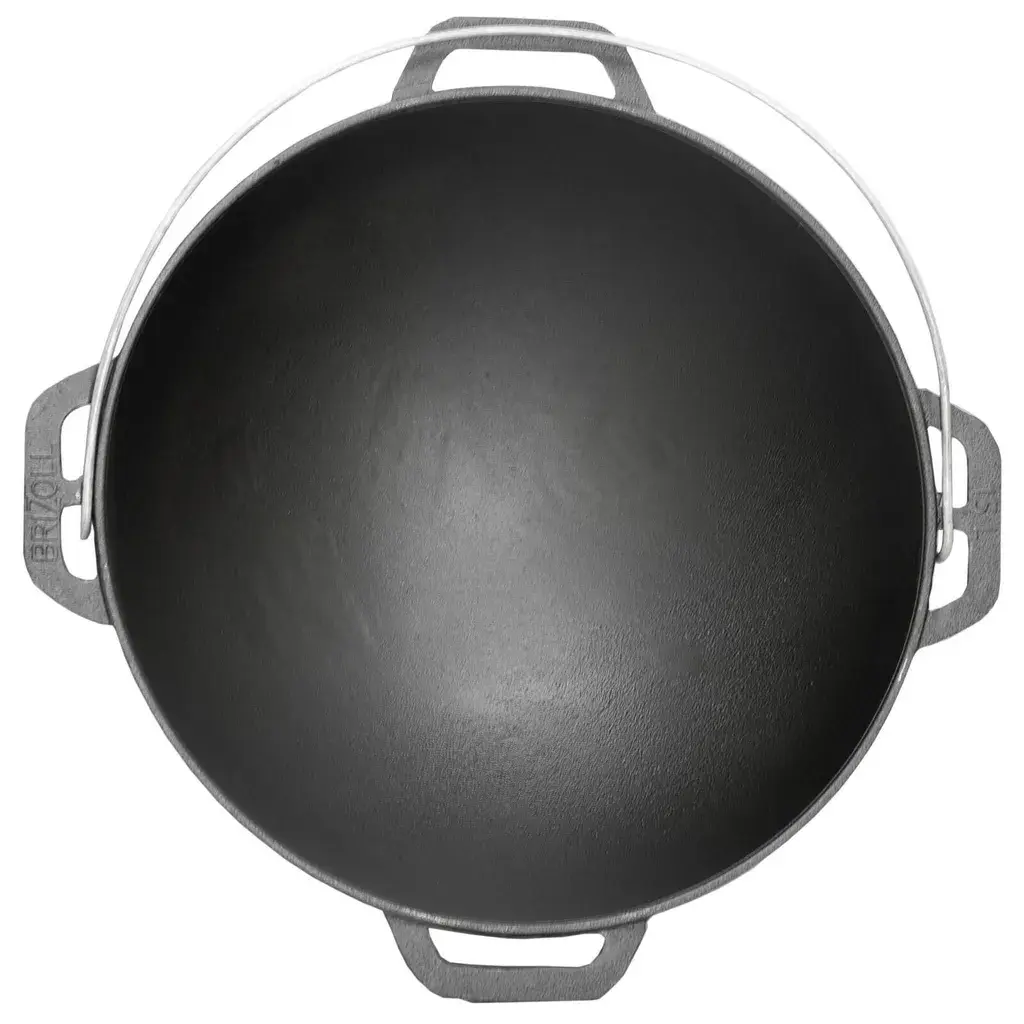 В отличие от классических воков, толстостенный чугунный казан долго сохраняет энергию и может использоваться как для тушения, так и для жарки мяса и овощей.