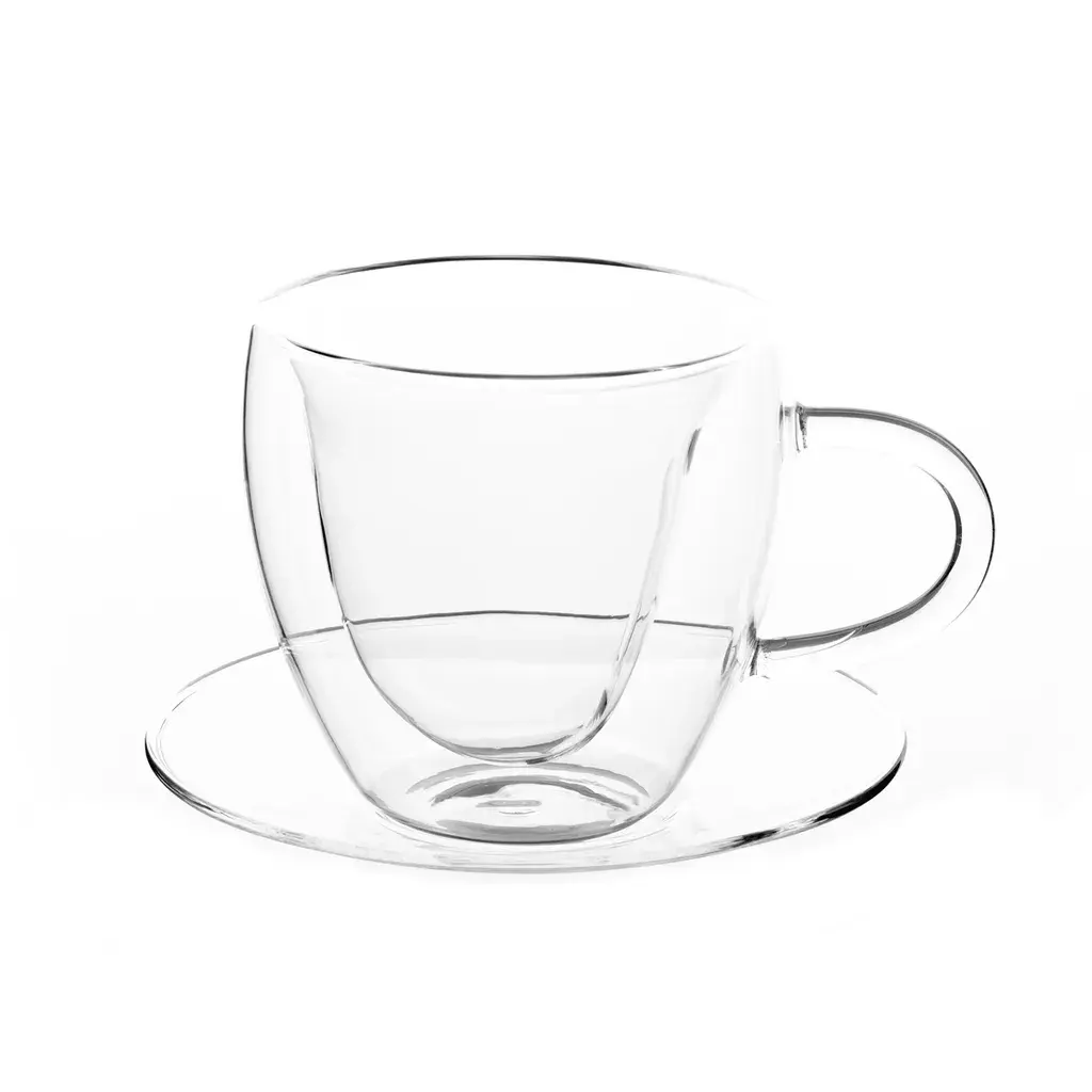 Термокружка с блюдцем (2 шт.) Hotcolder Heart Type 29 250 мл - прозрачная; Размеры (Шx