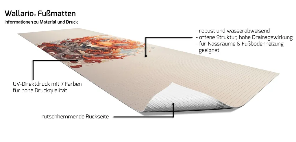Украсьте свою ванную комнату с помощью самых популярных мотивов из коллекции Wallario в виде нескользящего коврика.