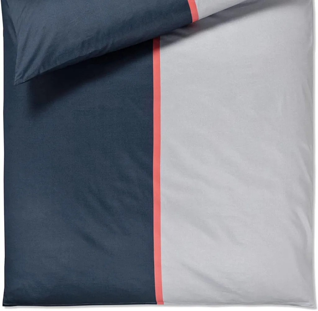Это высококачественное постельное белье от люксового бренда JOOP! Изготовленная из 100-процентного хлопка, она впечатляет своим элегантным дизайном. Широкая темно-синяя полоса украшает комплект с обеих сторон и прекрасно подчеркивается серой поверхностью на противоположной стороне. Линия лососевого цвета в центре пододеяльника стильно завершает классический дизайн. Постельное белье с приятной гладкой и приятной поверхностью очень приятно для кожи и создает первоклассную атмосферу в вашей спальне. Мечтайте в этом произведении и наслаждайтесь спокойными ночами высочайшего качества.