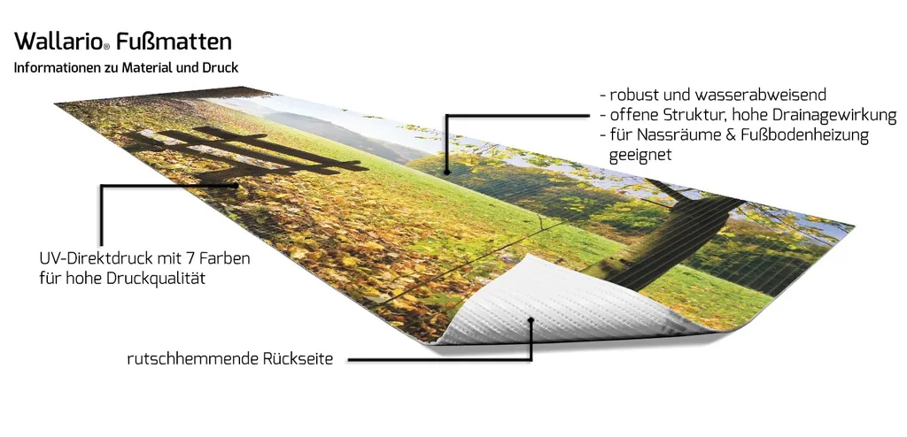 Вы также можете приобрести все мотивы Wallario в виде настенных картин, плакатов, накладок на плиты, дверных обоев и многого другого. Вся продукция коллекции Wallario создана специально для вас и производится на высококачественном оборудовании.