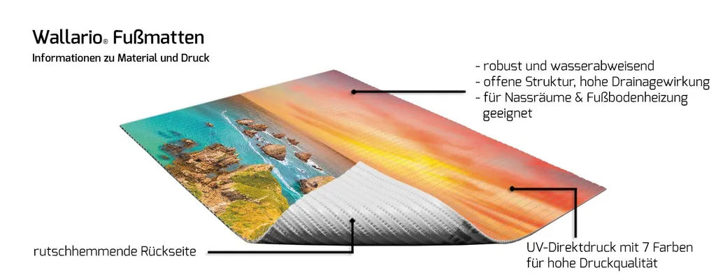 Вы также можете приобрести все мотивы Wallario в виде настенных картин, плакатов, накладок на плиты, дверных обоев и многого другого. Вся продукция коллекции Wallario сделана специально для вас и изготовлена на высококачественном оборудовании.