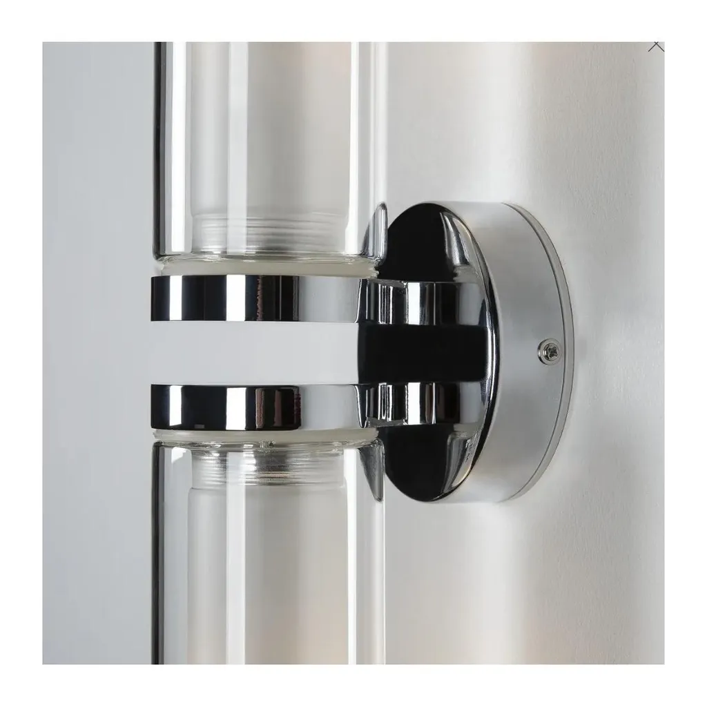 Настенный светильник высокого напряжения WL 106 изготовлен из хромированного алюминия со стальными и стеклянными элементами и оснащен еще одним цилиндром из сатинированного стекла. Настенный светильник WL 105, подготовленный для установки энергосберегающих или светодиодных ламп типа E14, готов к прямому подключению к сети 230 В. Кроме того, класс защиты IP44 допускает установку во влажных помещениях.