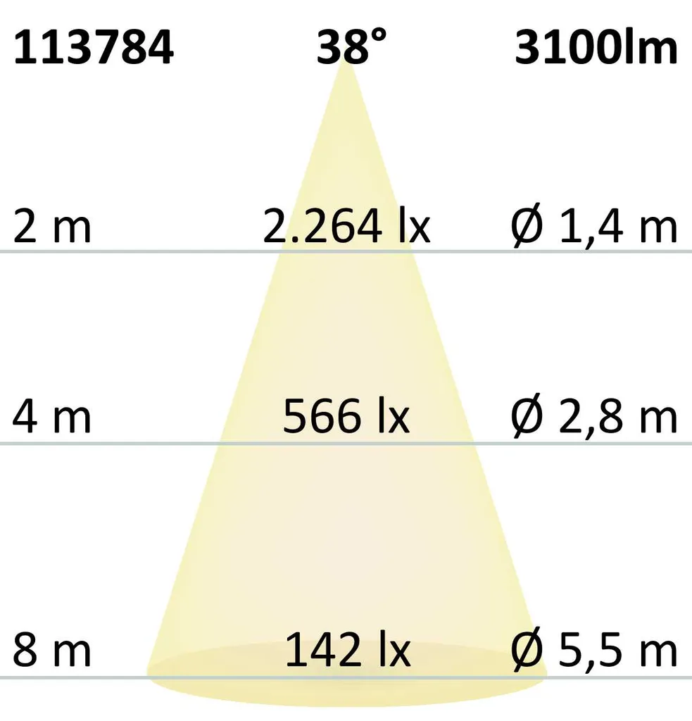 • Угол луча: 38 градусов