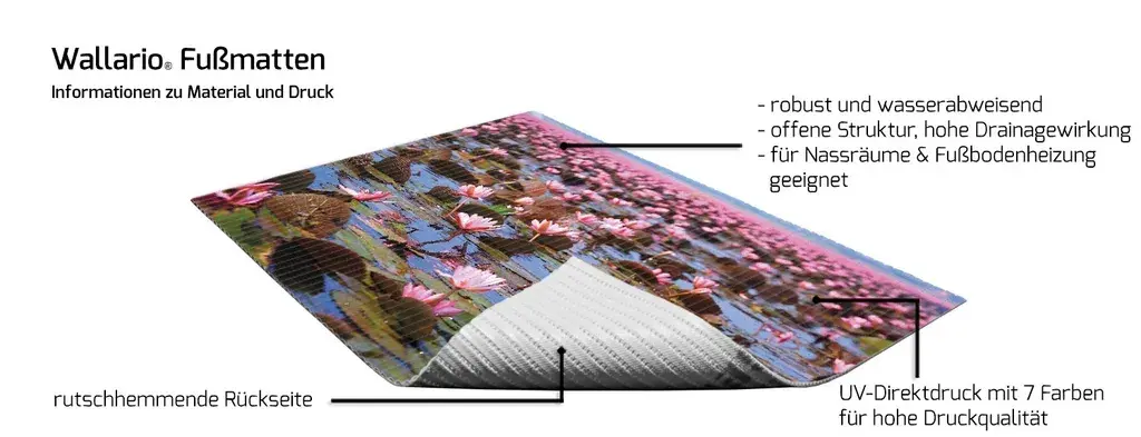Украсьте свою ванную комнату с помощью самых популярных мотивов из коллекции Wallario в виде нескользящего коврика.