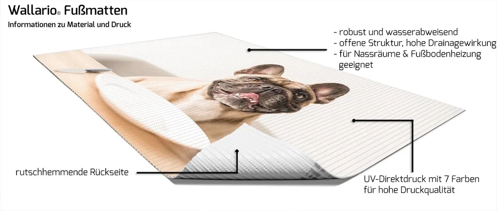 Украсьте свою ванную комнату с помощью самых популярных мотивов из коллекции Wallario в виде нескользящего коврика.