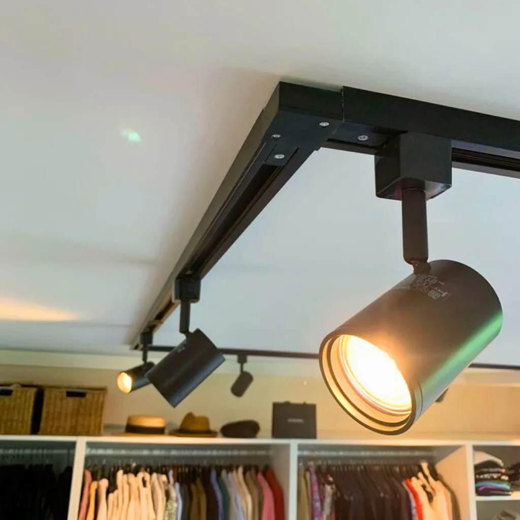 Современный дизайн черного цвета идеально вписывается в гостиную, кухню, спальню и другие помещения. Этот комплект трекового освещения, состоящий из 5 точечных светильников и L-образной формы, позволяет настраивать распределение света.