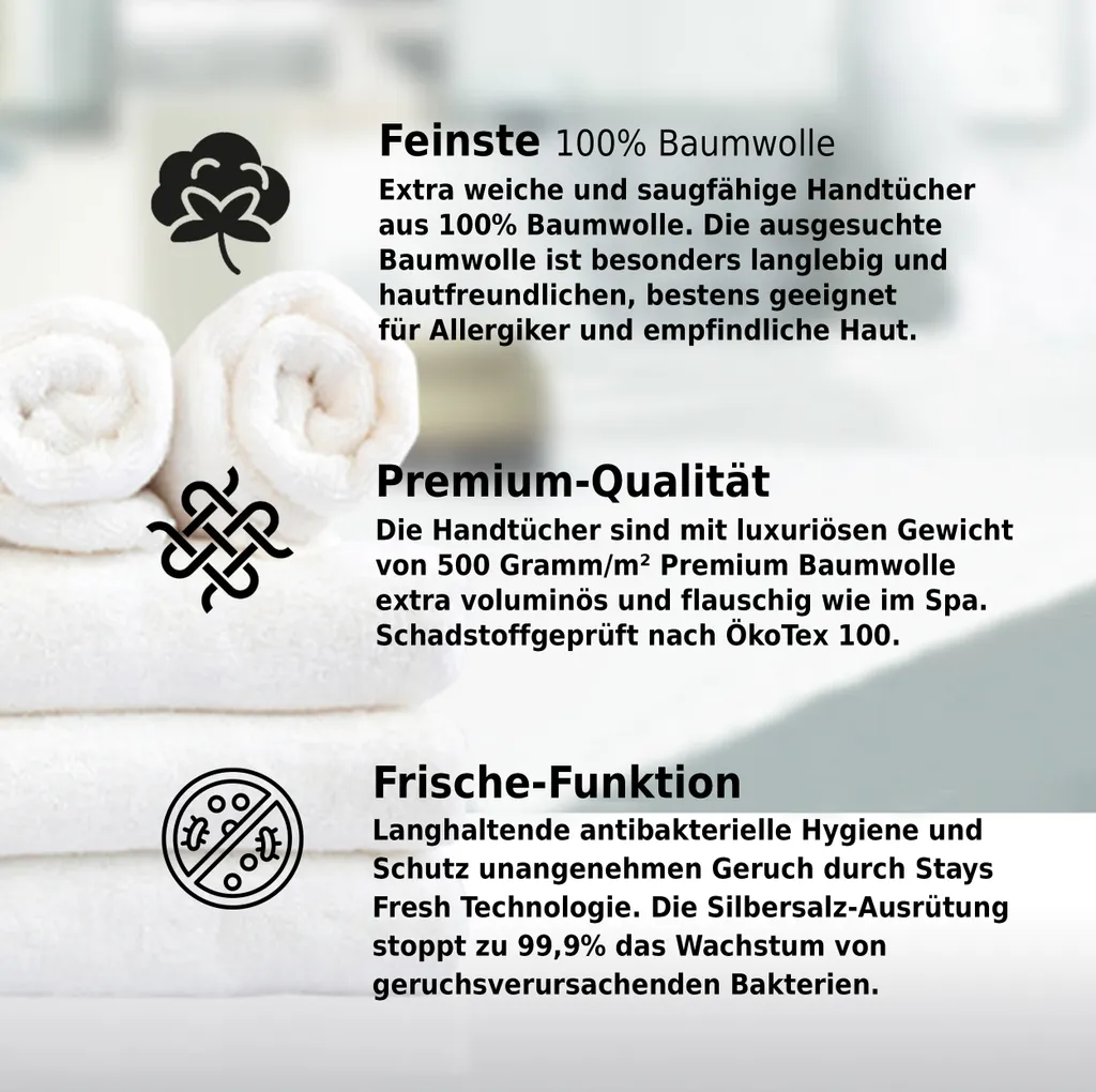 ПРЕМИУМ КАЧЕСТВО: полотенца очень нежны для кожи. В состав полотенец входит 100% хлопок, что обеспечивает долговечность и лучшую устойчивость к выцветанию и появлению пятен.
