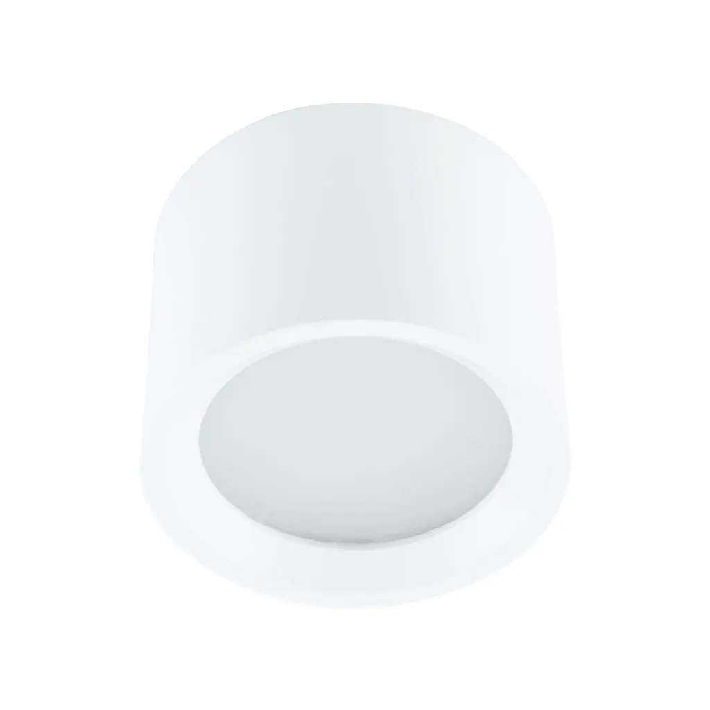 • Вневременный потолочный точечный светильник белого цвета.