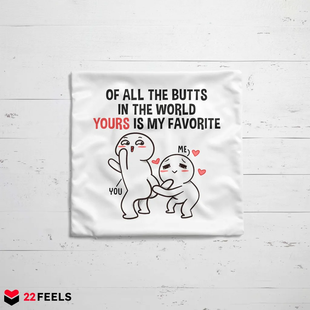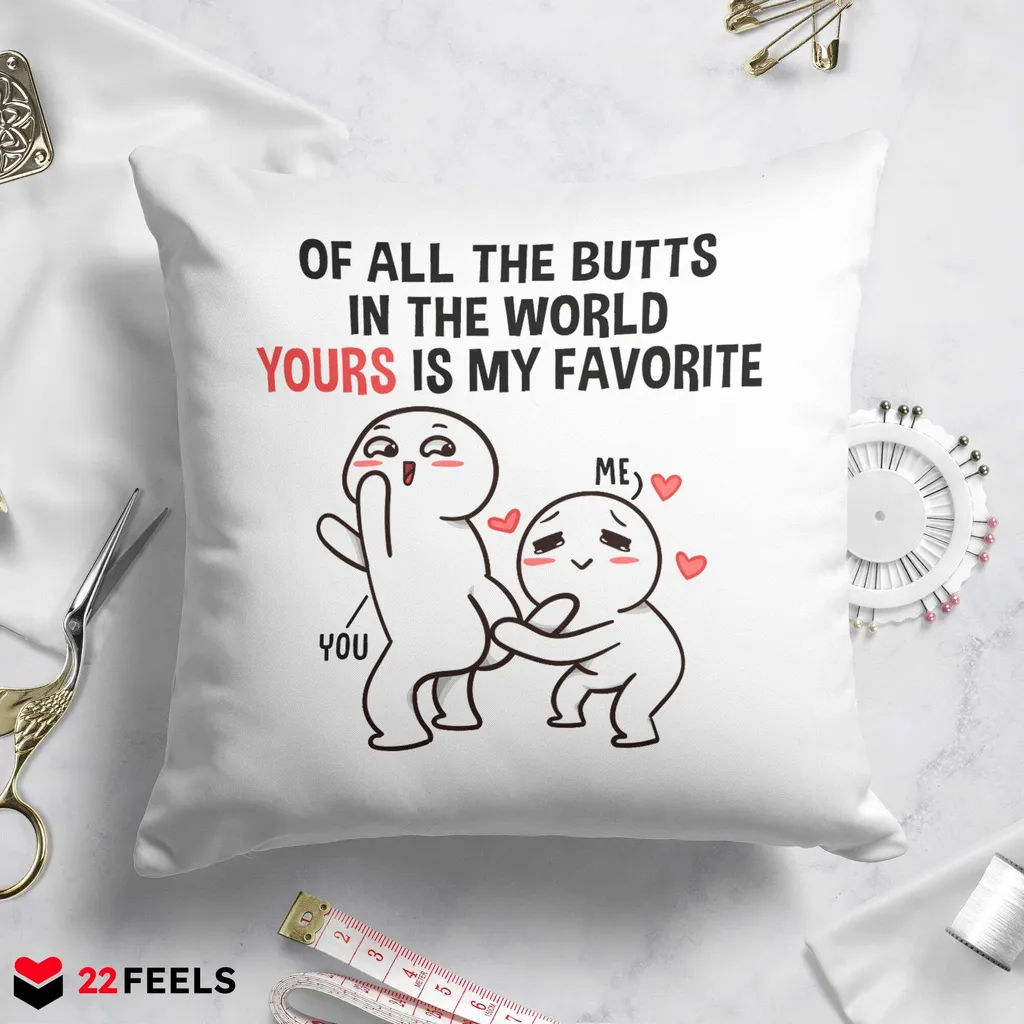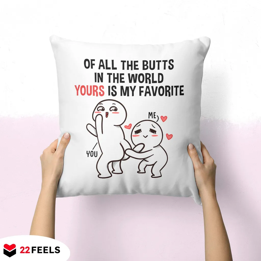 На чехле подушки надпись: «Из всех задниц в мире твоя — моя любимая».