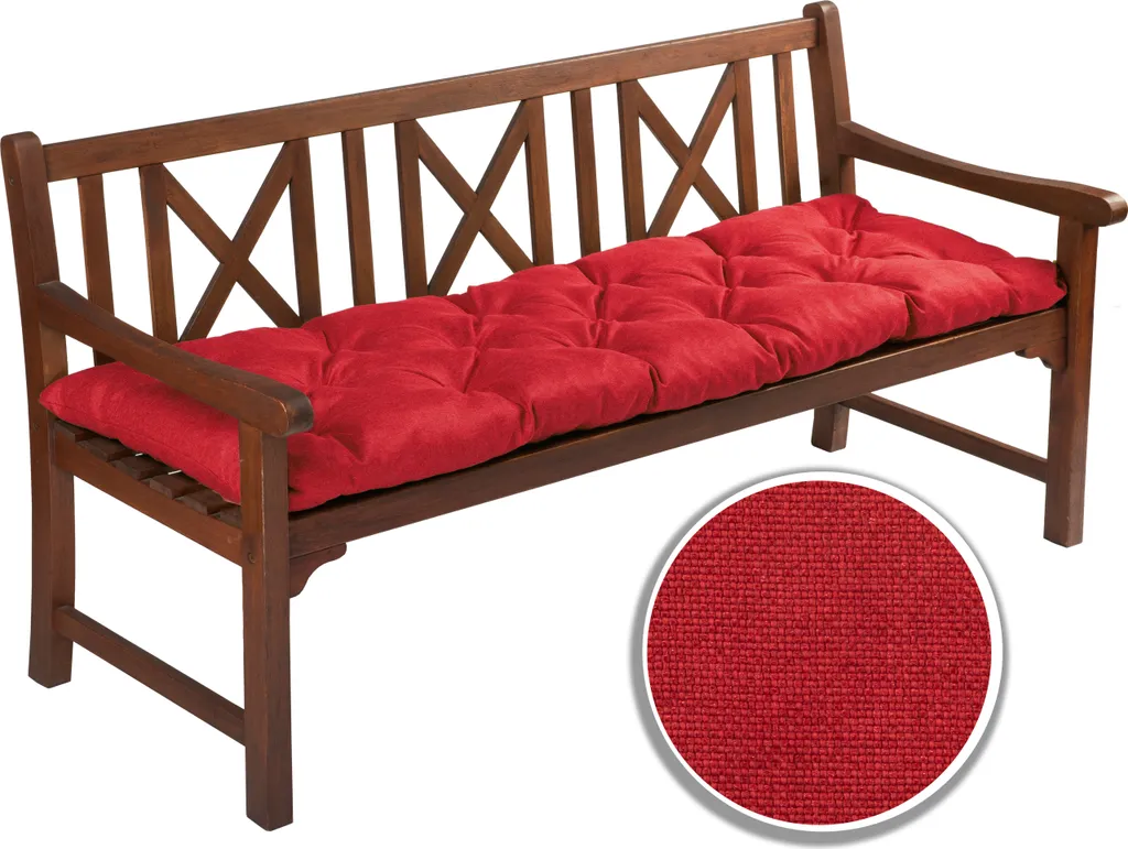 Подушки для скамейки оснащены крепежными ремнями, поэтому они очень хорошо приспосабливаются к садовым скамейкам и не падают. Кроме того, подушки простеганы машинной стежкой, что придает им красивый стеганый эффект и предотвращает соскальзывание наполнителя.