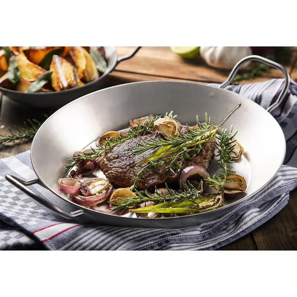 Благодаря прочному и чрезвычайно термостойкому набору железных сковородок chg вы можете готовить и подавать блюда традиционно и аутентично