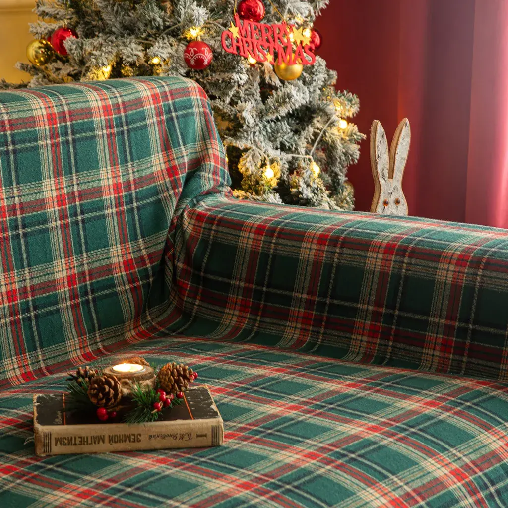 Клетчатый – элегантный клетчатый дизайн, рождественские элементы, можно использовать в качестве украшения рождественских вечеринок. Изготовлен из прочной ткани из хлопка и полиэстера, устойчив к разрывам, отличного качества.