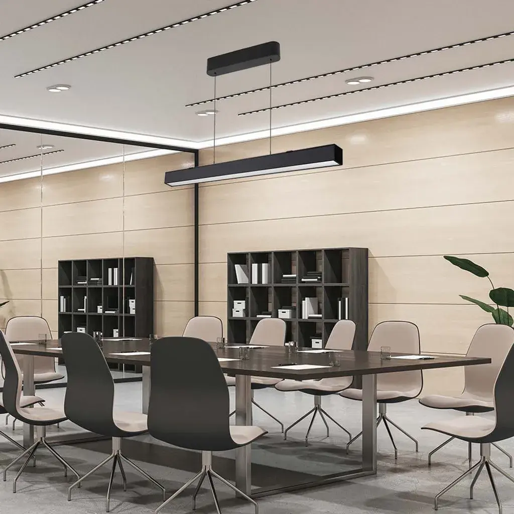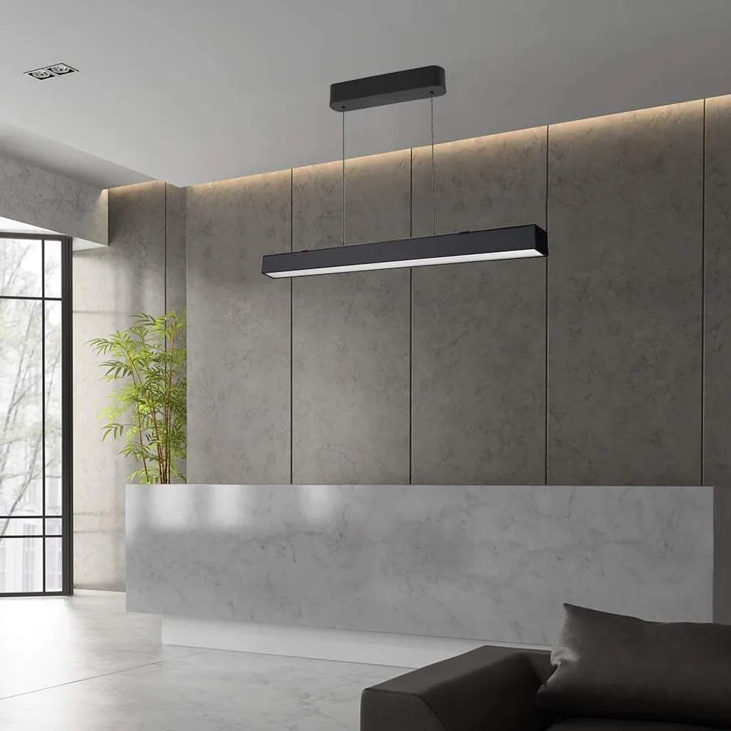 Украсьте свой интерьер с помощью нашей изысканной линейной светодиодной подвесной лампы. Благодаря элегантному черному дизайну 3-в-1 этот светильник органично вписывается в современную эстетику и сам по себе становится произведением искусства.