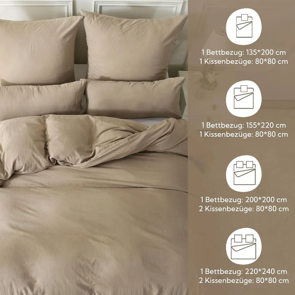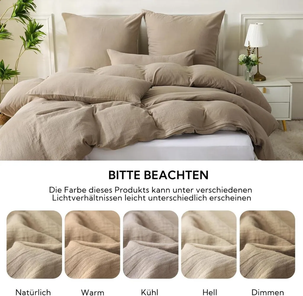 Благодаря специальной стирке с песком ткань на ощупь напоминает лен, структурирована и ее не нужно гладить для сохранения текстуры. Это делает уход за постельным бельем особенно простым и удобным. Комплект постельного белья SOULFUL поставляется в высококачественной упаковке и поэтому идеально подходит в качестве подарка на свадьбу, день рождения или праздник. Наслаждайтесь роскошным комфортом этого двухслойного муслинового постельного белья круглый год!
