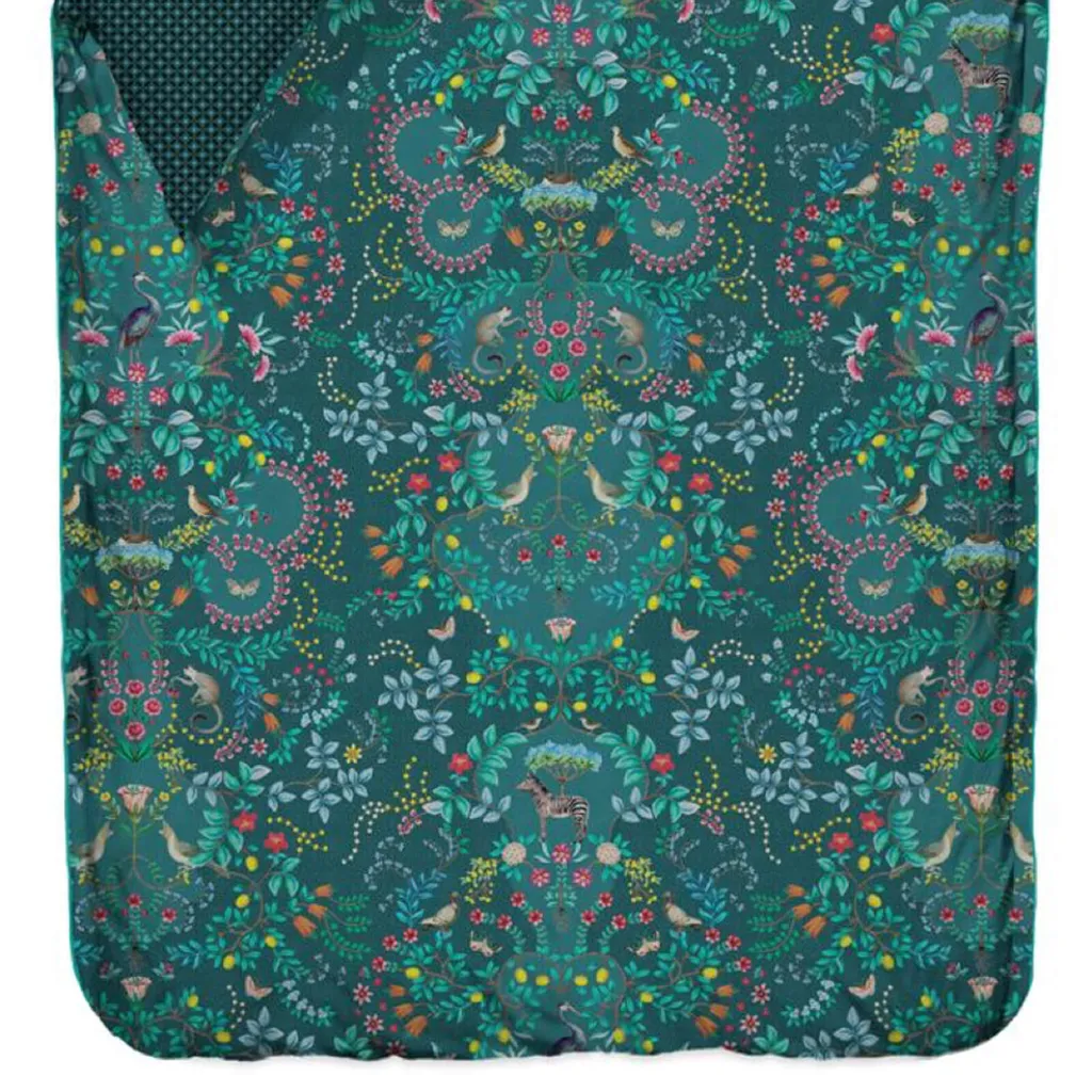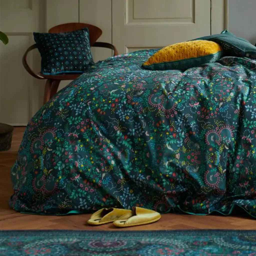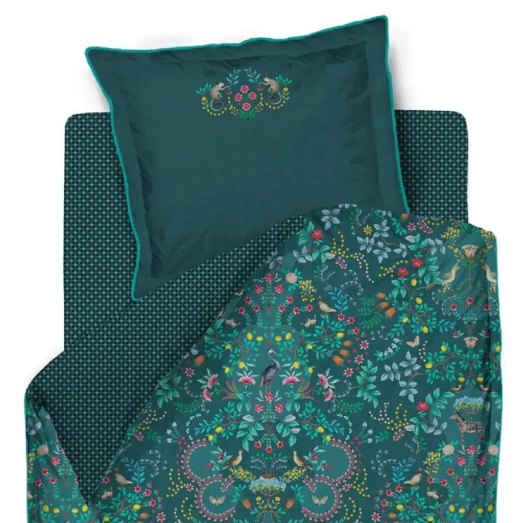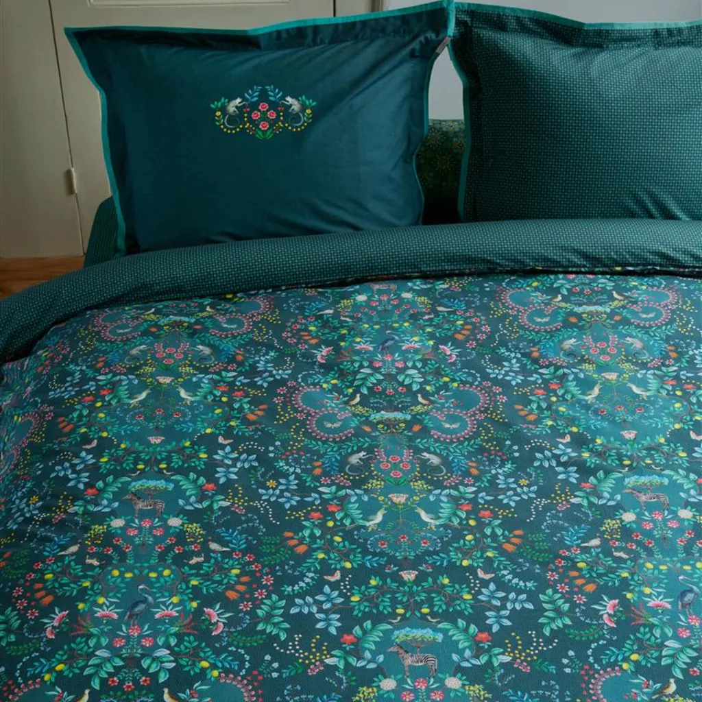 Постельное белье «Лесные находки» создаст волшебную атмосферу в вашей спальне. Красочные цветы, фрукты и животные всех видов украшают переднюю часть набора и делают его притягивающим взгляды. Изнаночная сторона двустороннего постельного белья выполнена в классическом узоре Pi