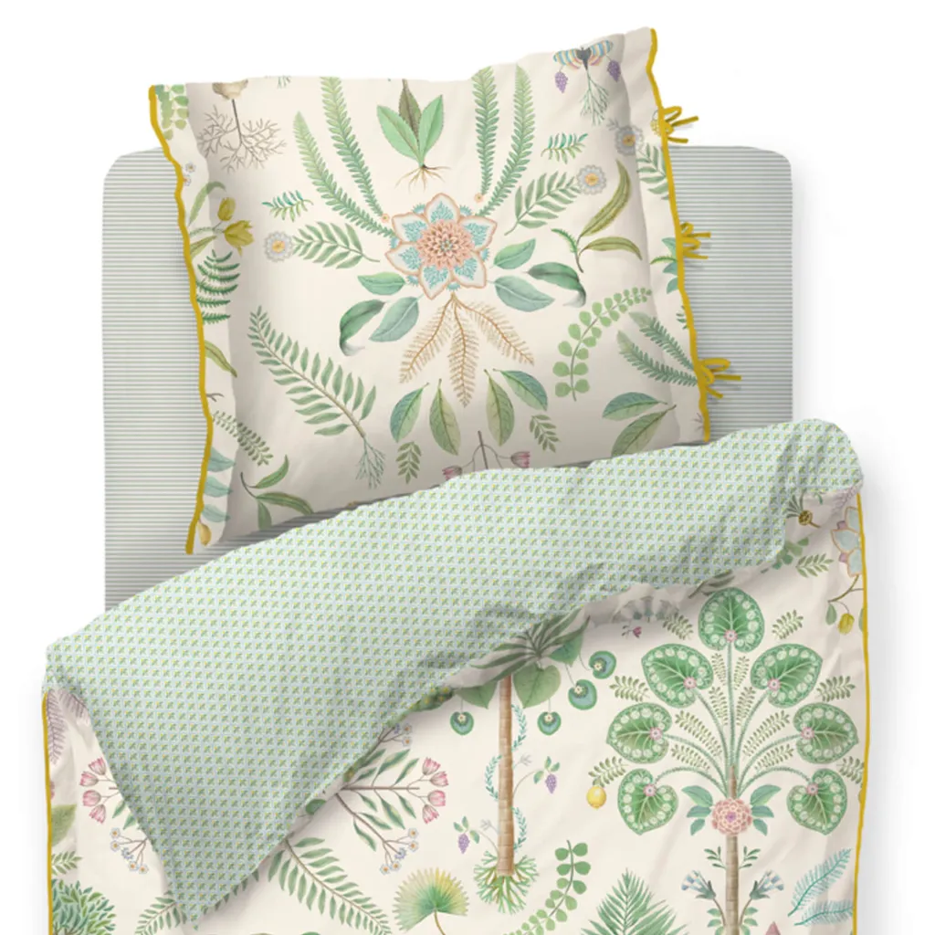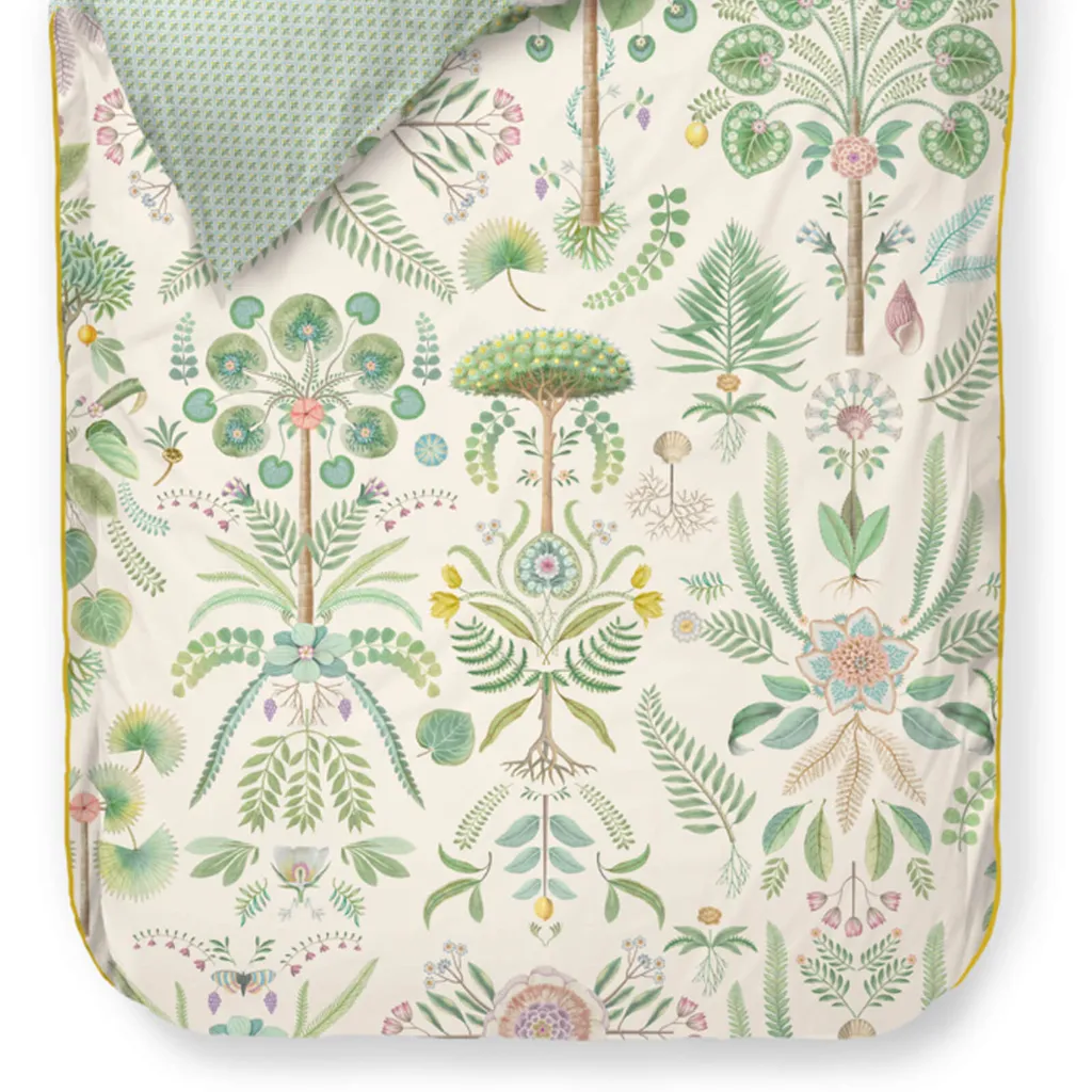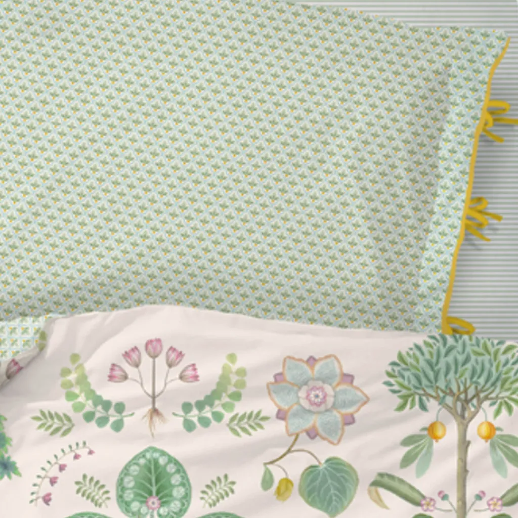 P Studio в пастельных тонах и идеально гармонирует со изящным декором спереди. Точечный кремовый фон подчеркивает деревья с их корнями и красочные мотивы, такие как ракушки и фрукты. Устройтесь поудобнее на гладкой и приятной поверхности перкаля из 100-процентного хлопка и наслаждайтесь комфортным и спокойным сном. Постельное белье поставляется в эксклюзивной подарочной упаковке.