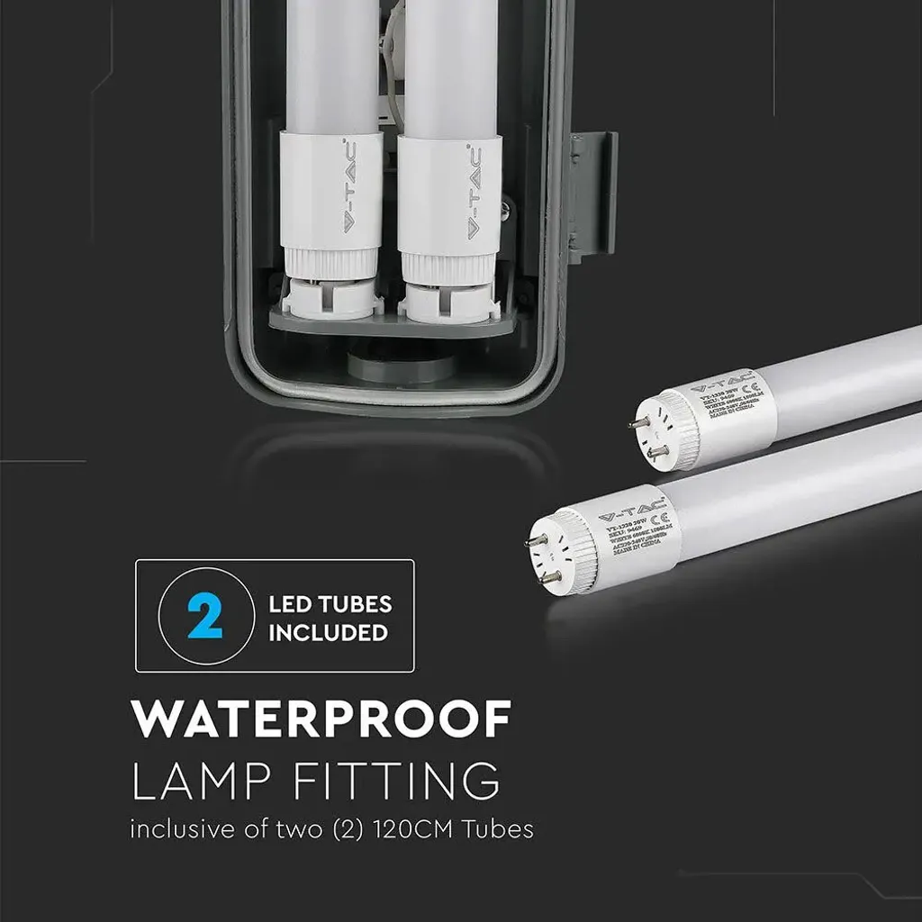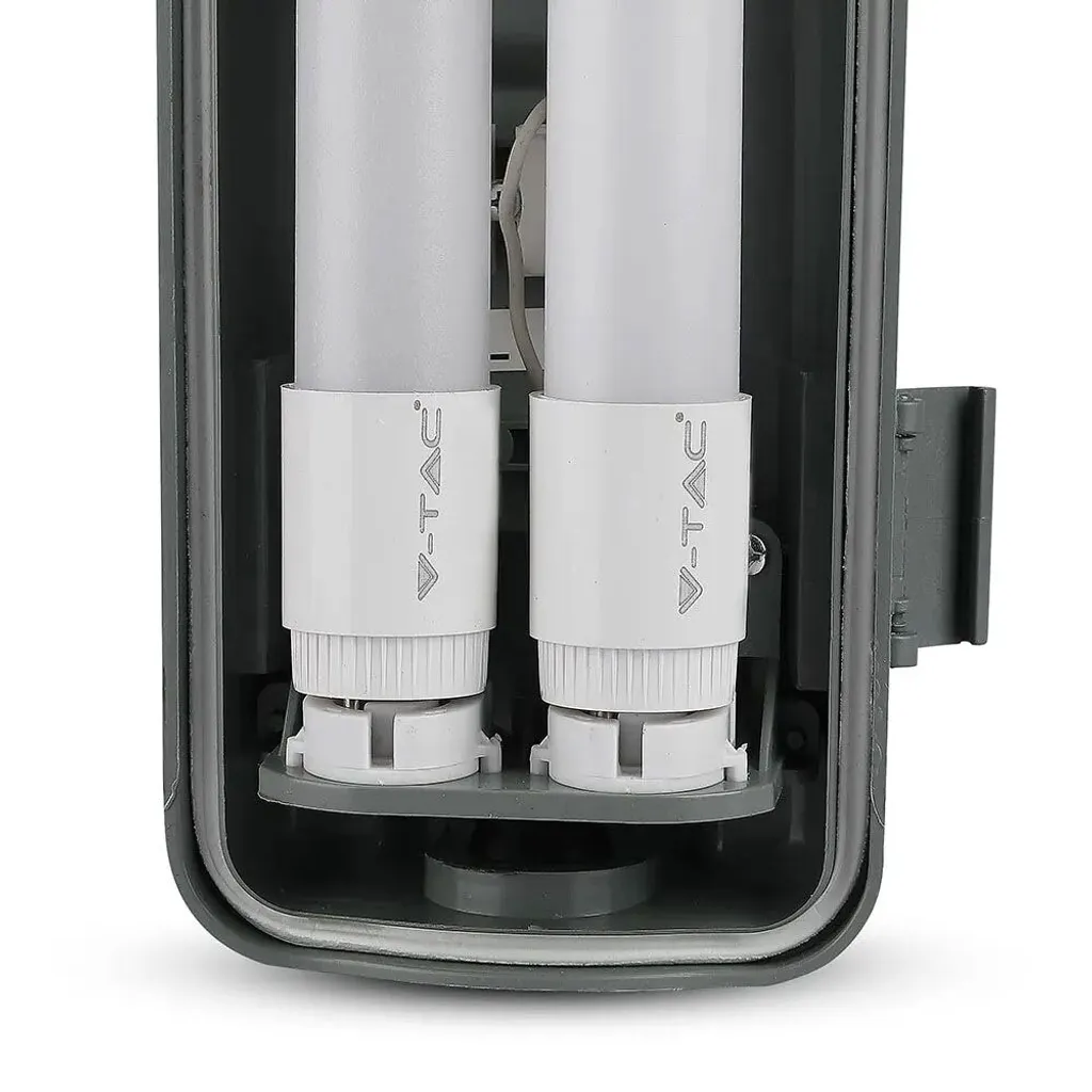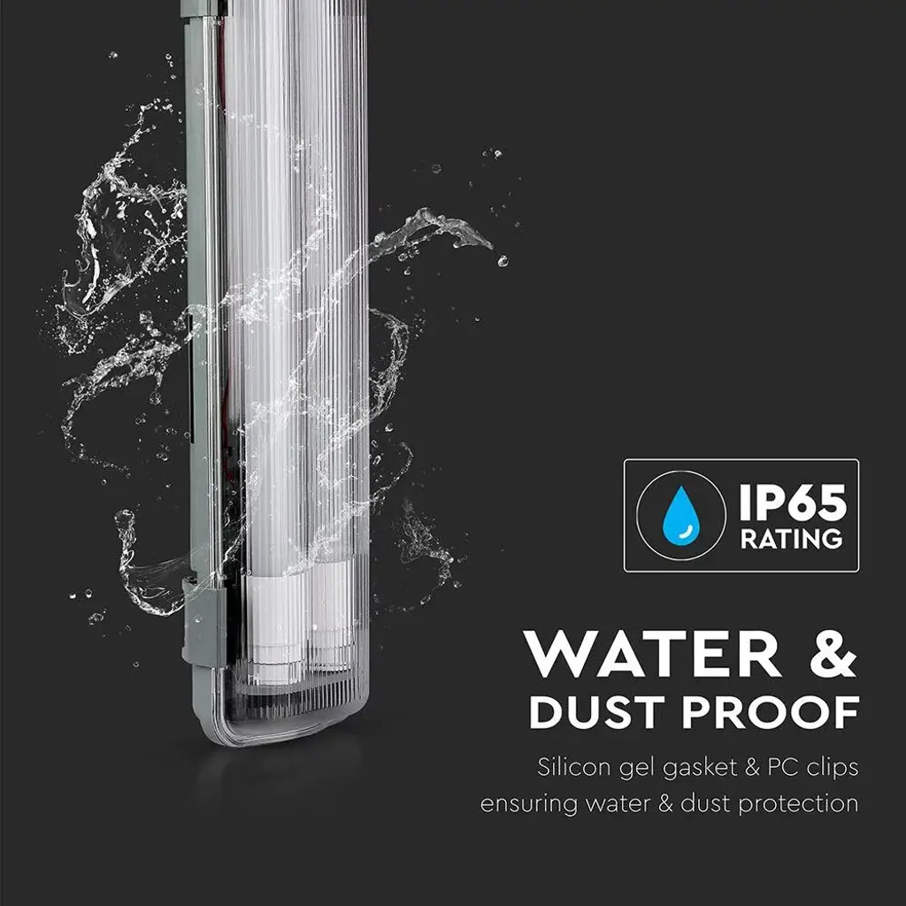 Технические данные:\r- Класс энергоэффективности: A+\r- Чрезвычайно прочный светильник для ванны с 2 энергосберегающими светодиодными лампами. Благодаря классу защиты IP65 и прочному корпусу из АБС-пластика этот фонарь можно надежно использовать и на открытом воздухе. Технические данные: Класс энергоэффективности: A+ Взвешенное энергопотребление: 36 тыс. Втч/1000 ч. Рабочее напряжение: 230 В Мощность: 2x18 Вт Цветовая температура: 6400 К (холодный белый) Световой поток: 2x 1700 лм Световая отдача: 94 лм /Вт Индекс цветопередачи (CRI):> 80 Ra Подходит для акцентного освещения: нет Регулируемая яркость: нет Угол луча: 120° Средний срок службы: 30 . 000 часов циклов переключения:>15 . 000 Сохранение светового потока по окончании срока службы: 70 % Время зажигания: