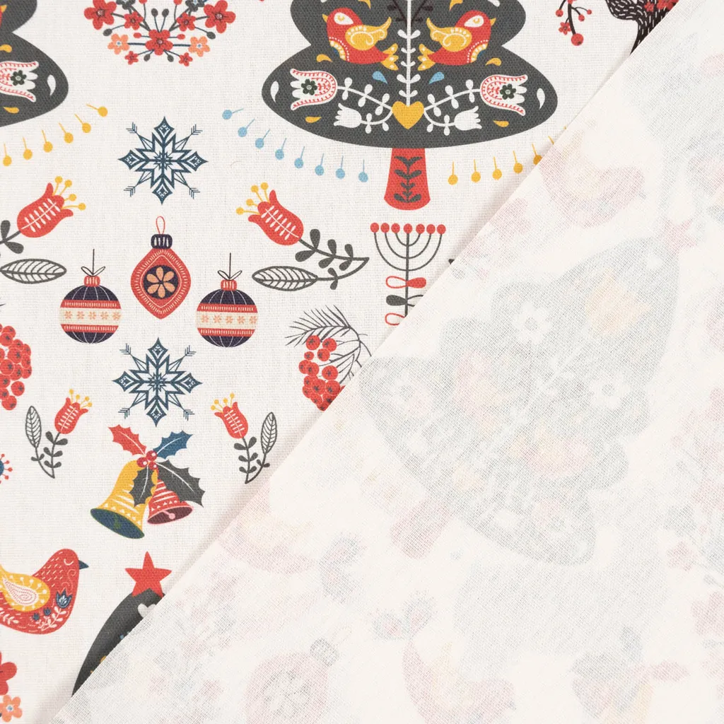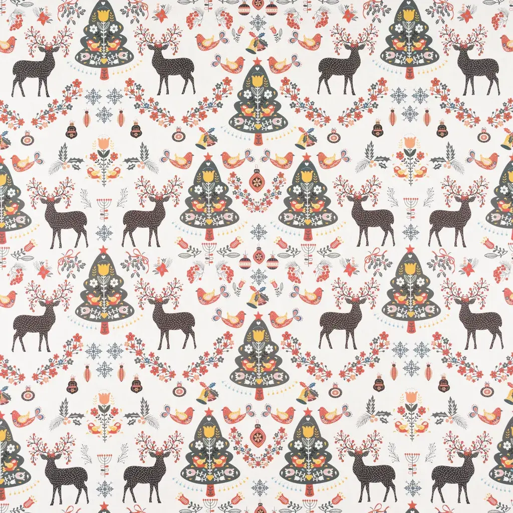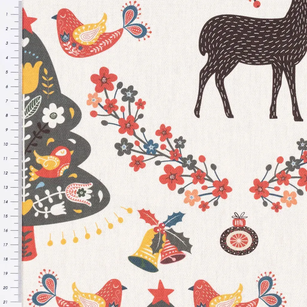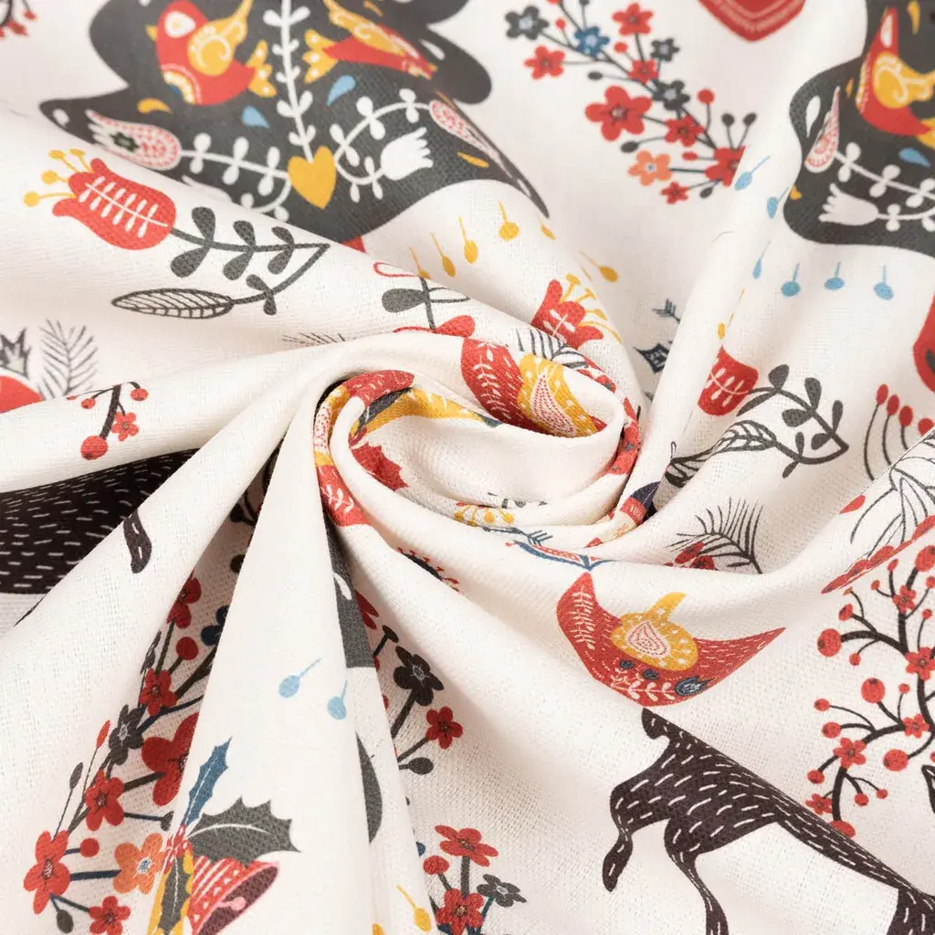 • Вы получите чехол для подушки из полупанамской ткани с принтом фольклорных орнаментов, оленей, цветов и деревьев на фоне цвета экрю