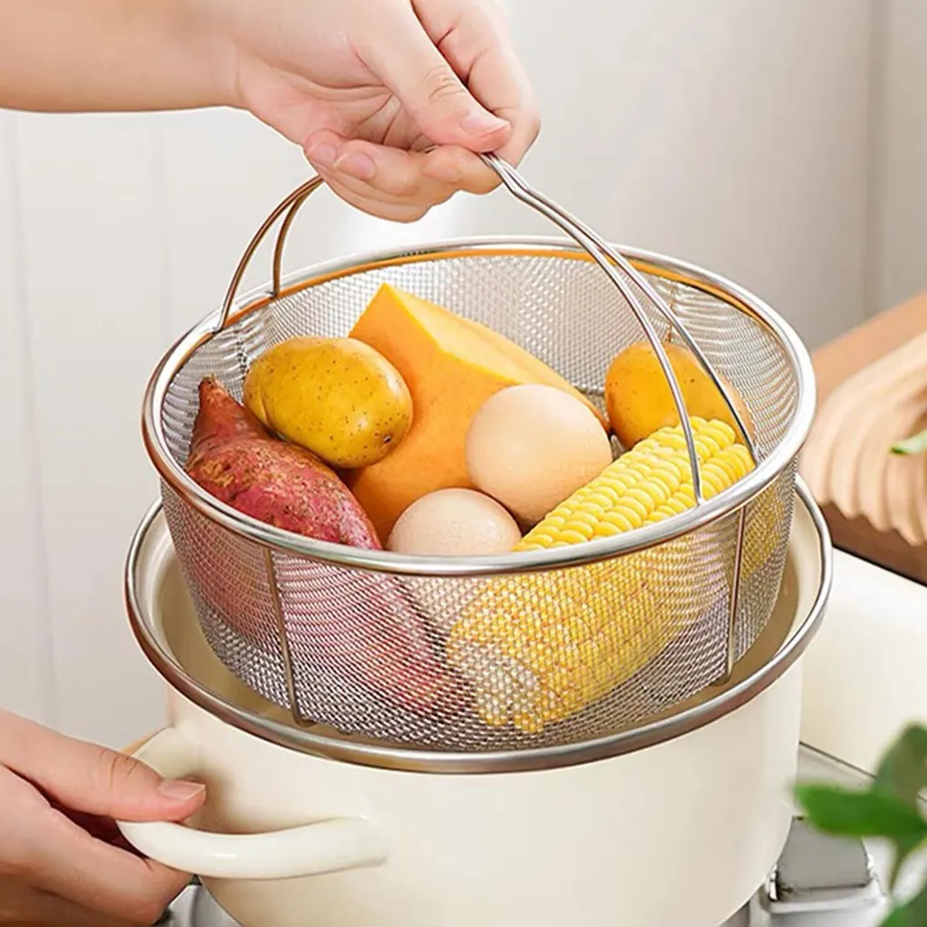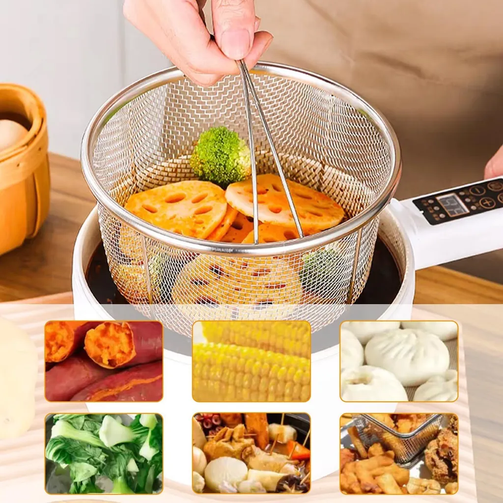 Универсальный дизайн: эта исключительная пароварка из нержавеющей стали не только готовит, готовит в скороварке, жарит во фритюре и готовит на пару, но также является незаменимым многофункциональным инструментом на кухне, открывая безграничные возможности для приготовления пищи.