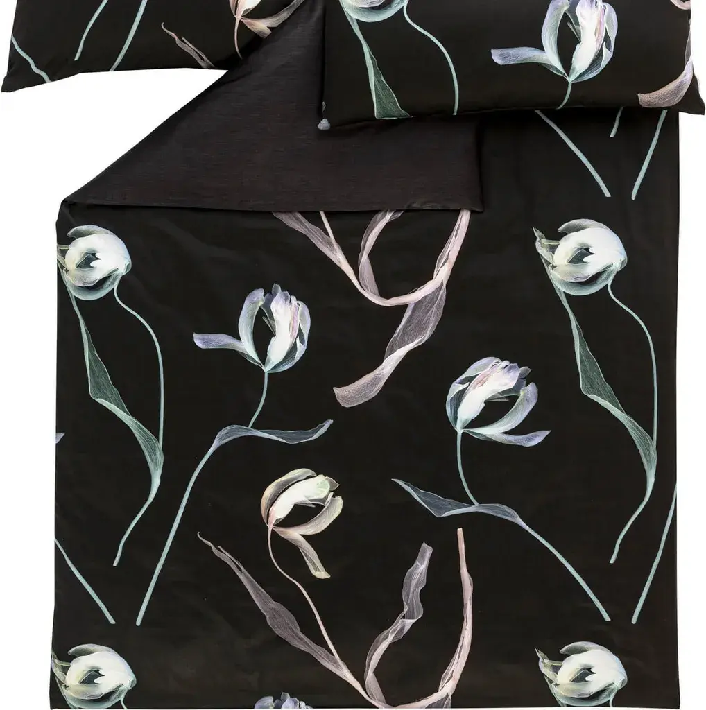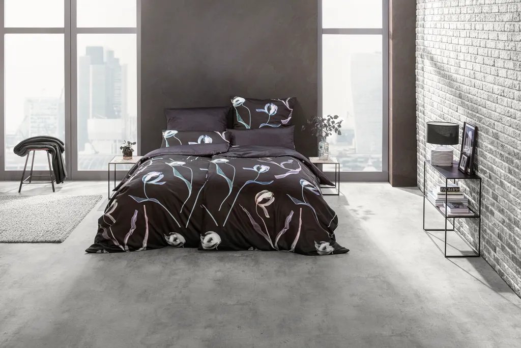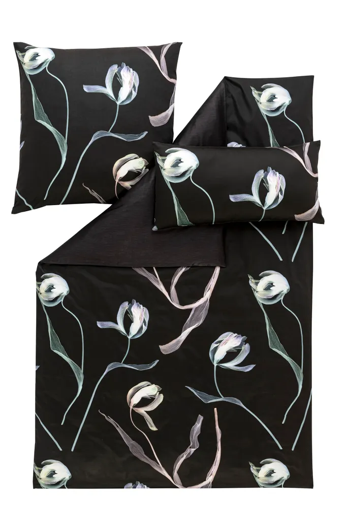 Постельное белье Tulipa из коллекции Atelier от Estella создаст в вашей спальне впечатляющий цветочный дизайн. Внушительные, нежные тюльпаны особенно красиво выделяются на темном фоне и напоминают красочный весенний луг. Задняя часть просто черная и предоставляет гибкие возможности дизайна. Комплект изготовлен из 100-процентного мерсеризованного хлопка, выполнен из лучшего атласа Mako и обеспечивает максимальный комфорт во время сна благодаря гладкой, мягкой и приятной поверхности.