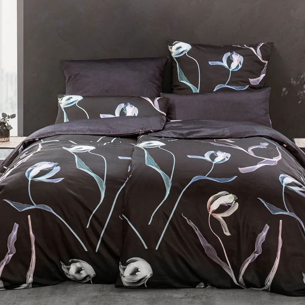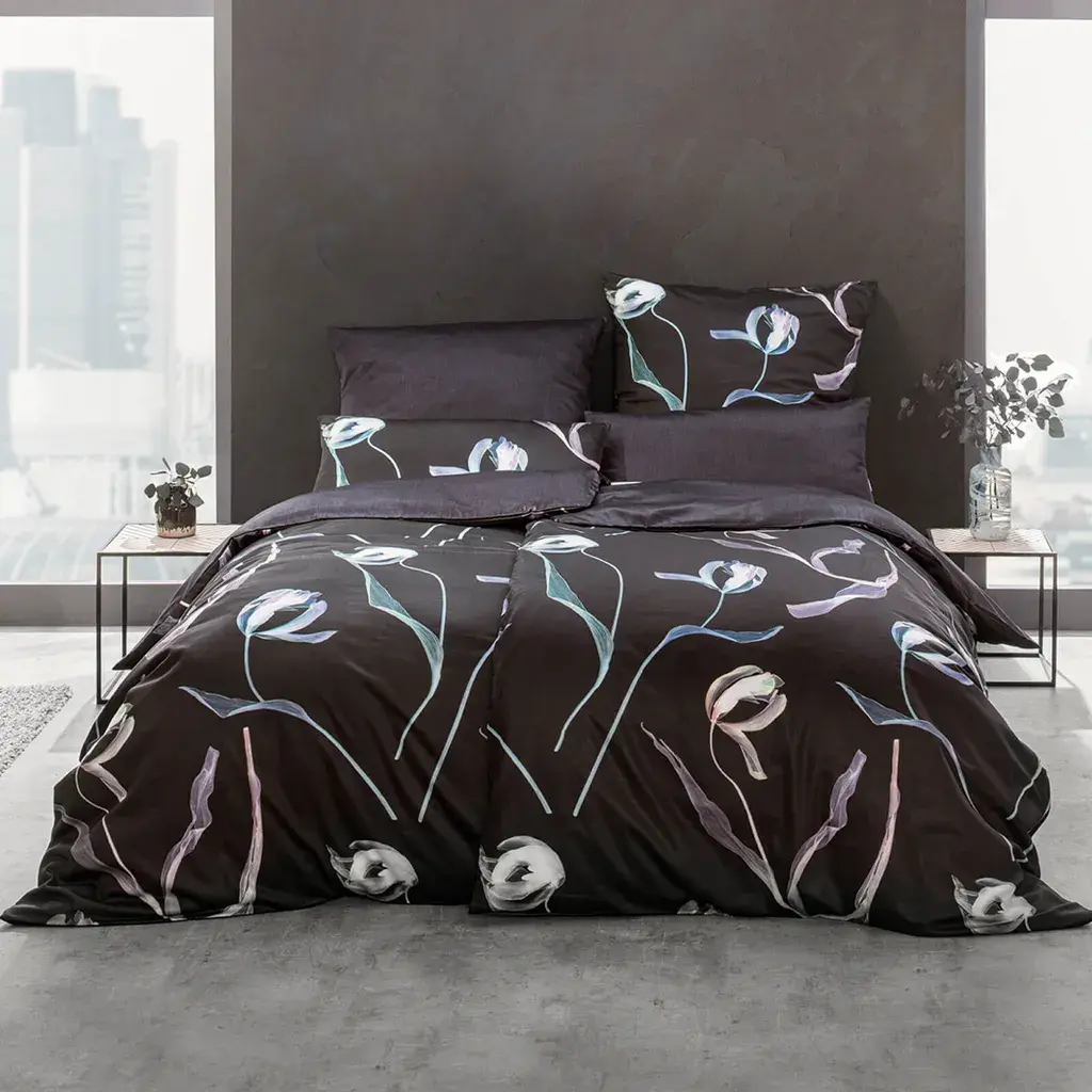 Постельное белье Tulipa из коллекции Atelier от Estella создаст в вашей спальне впечатляющий цветочный дизайн. Внушительные, нежные тюльпаны особенно красиво выделяются на темном фоне и напоминают красочный весенний луг. Задняя часть просто черная и предоставляет гибкие возможности дизайна. Комплект изготовлен из 100-процентного мерсеризованного хлопка, выполнен из лучшего атласа Mako и обеспечивает максимальный комфорт во время сна благодаря гладкой, мягкой и приятной поверхности.