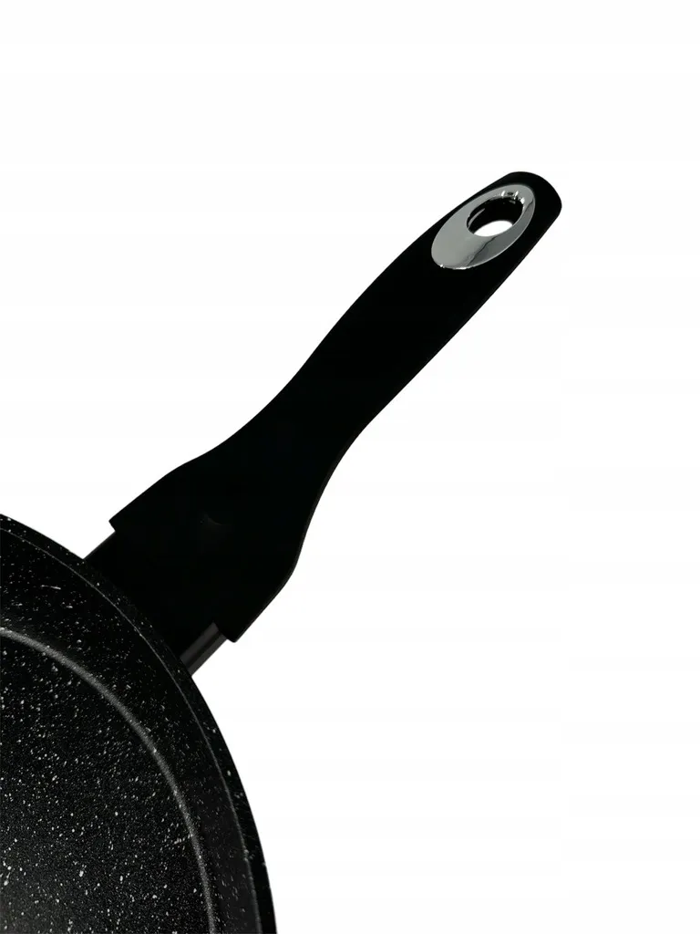 Поверхность сковороды имеет современное антипригарное мраморное покрытие, которое делает приготовление пищи легким и приятным. Не нужно беспокоиться о прилипании остатков пищи или сложностях с чисткой — все снимается с поверхности сковороды без особых усилий, а чистится быстро и легко. Кроме того, эта сковорода совместима со всеми источниками тепла, включая индукционные плиты, что делает ее универсальным выбором для любой кухни.