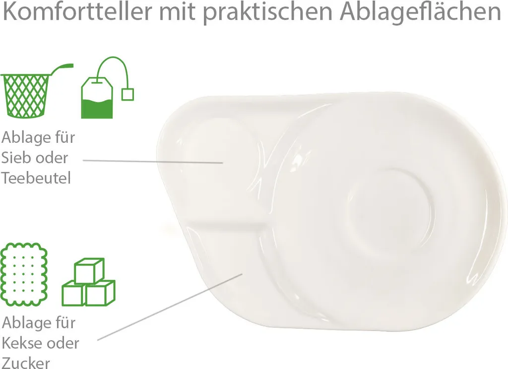 • БЛЮДЦЕ С ПОЛОЧКОЙ: практичная полка для ситечка или чайного пакетика, а также полка для печенья или сахара.
