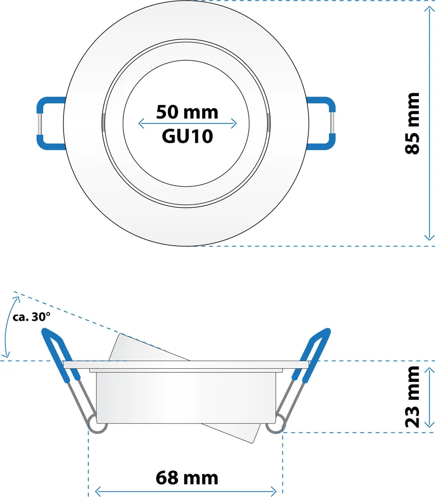 Простой монтаж:Размеры около 85x23 мм и диаметр отверстия около 68 мм гарантируют быструю и беспроблемную установку — почувствуйте плавную интеграцию в дизайн вашего интерьера. .