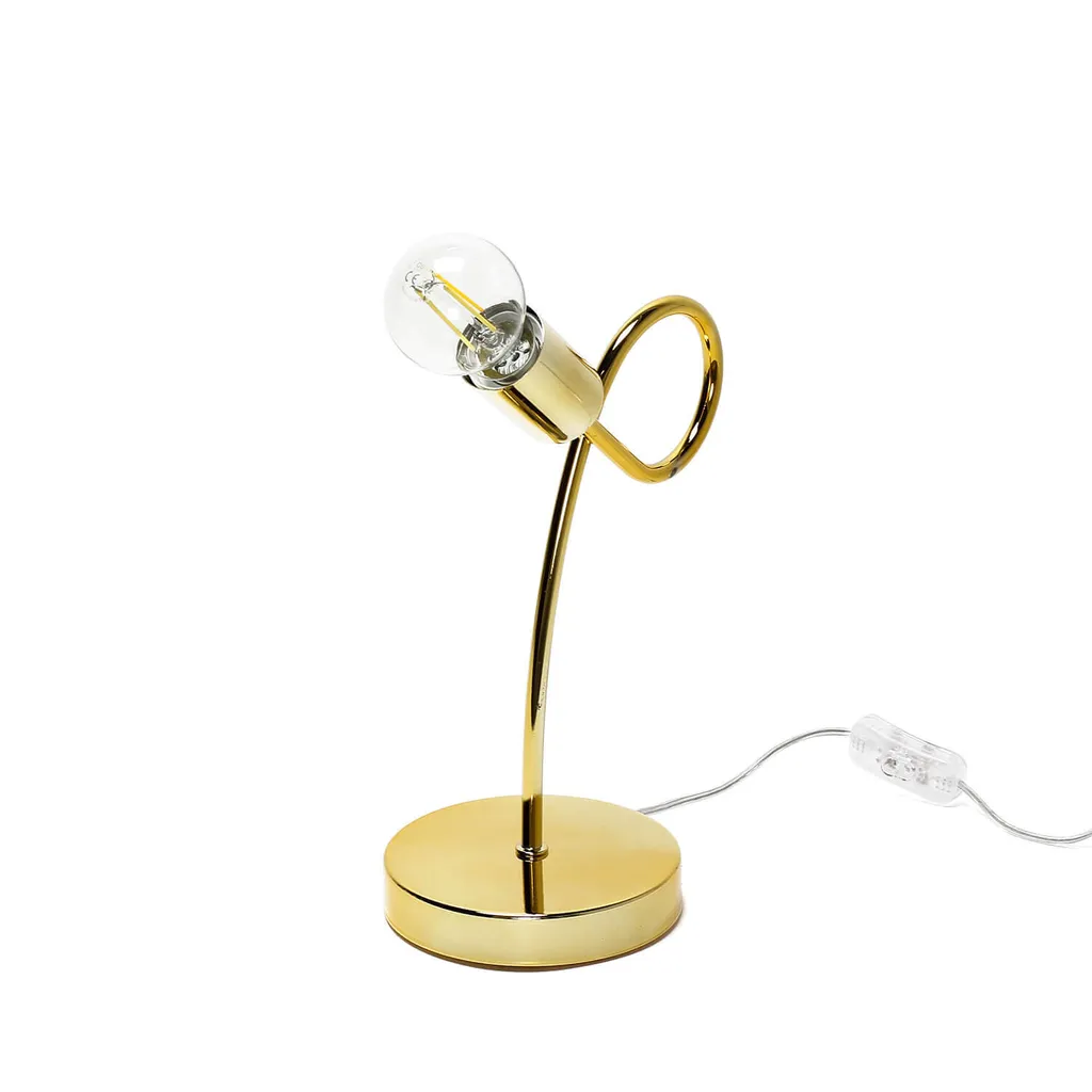 • Минималистичная настольная лампа с витым кронштейном. из блестящего золота.