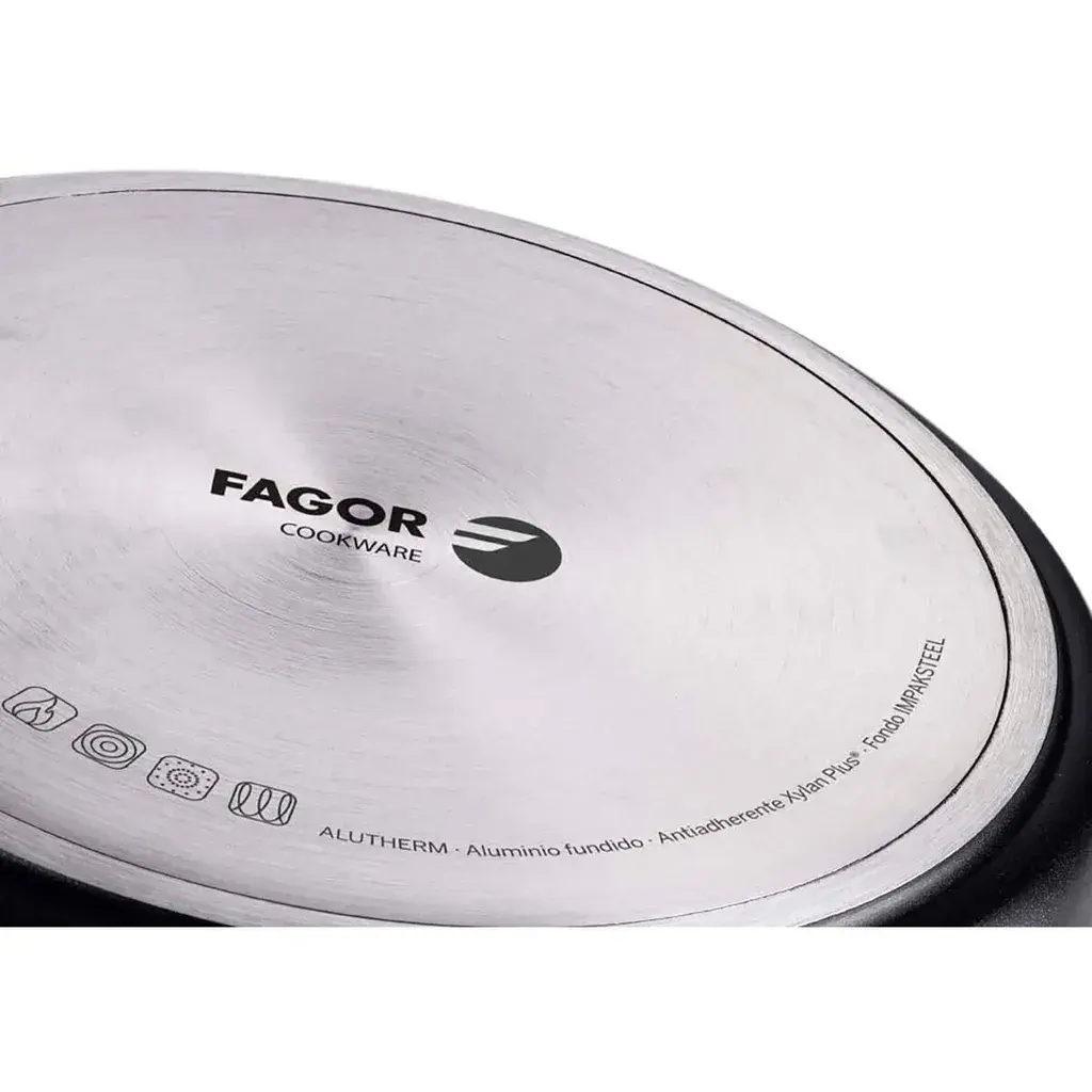Сковорода Alutherm ø18см, алюминий 3004. Литой алюминий высокой прочности. толщина корпуса 2мм. Двухслойное антипригарное покрытие из ксилана с эффектом армированного гранита. Основание термодиффузора изготовлено из ударопрочной стали с максимальным сопротивлением, что оптимизирует теплопроводность. эргономичные ручки из термоизоляционного бакелита. не содержит кадмия и пфоа. 0,0% тяжелых металлов. Подходит для всех видов пожаров. fagor