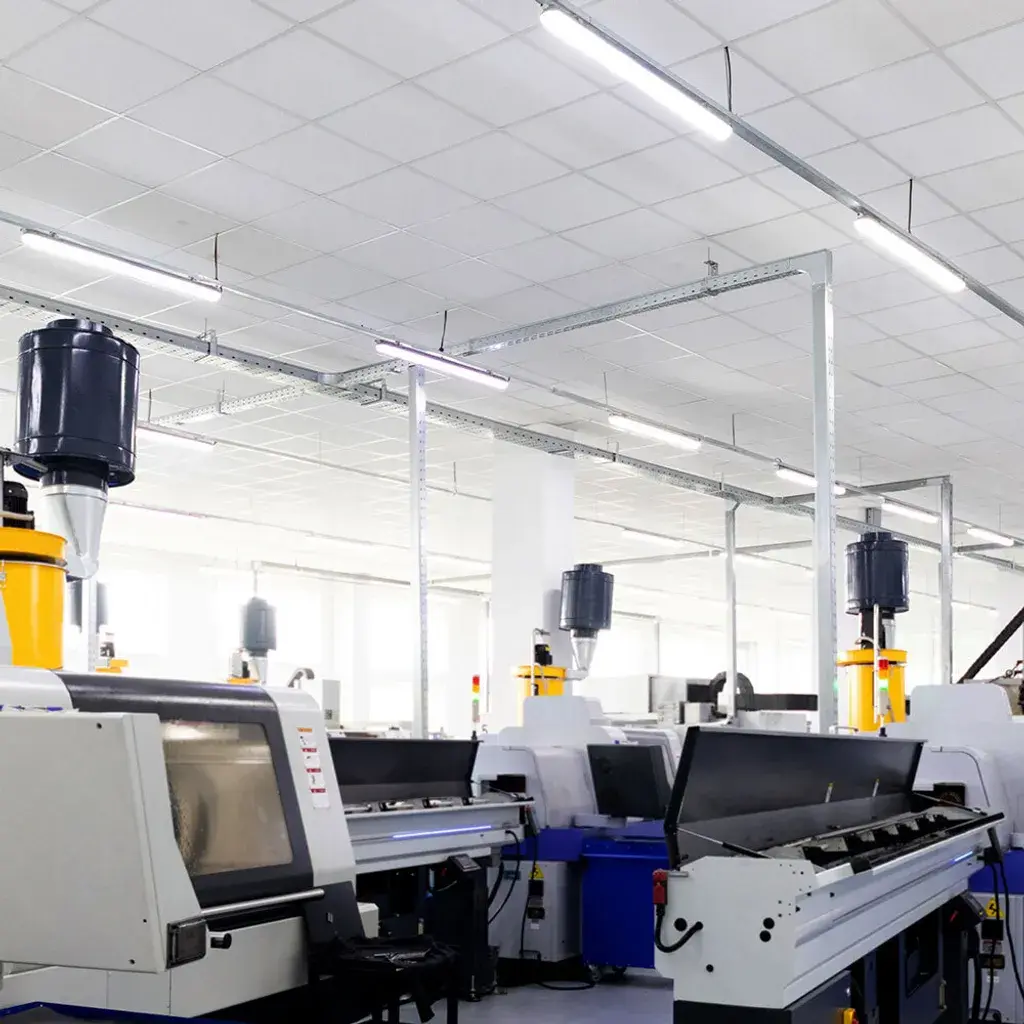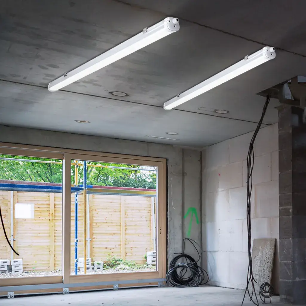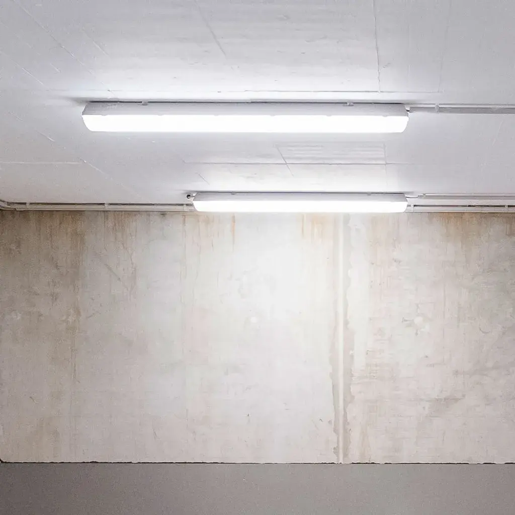 Описание Дизайн светодиодного потолочного светильника для использования в промышленных или складских помещениях, мастерских или гаражах. Благодаря высокому классу защиты IP65 этот светильник идеально подходит для освещения влажных и влажных помещений. Благодаря колоссальным 4320 люменам каждая зона, будь то рабочее место, подвал или гараж, оптимально освещена!  Всего можно соединить до 8 светильников, так что даже большие площади, такие как