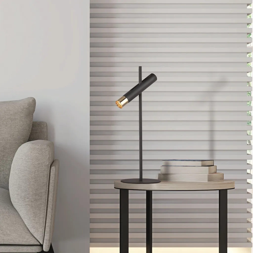 • Тонкая настольная светодиодная лампа черного и золотого цветов.