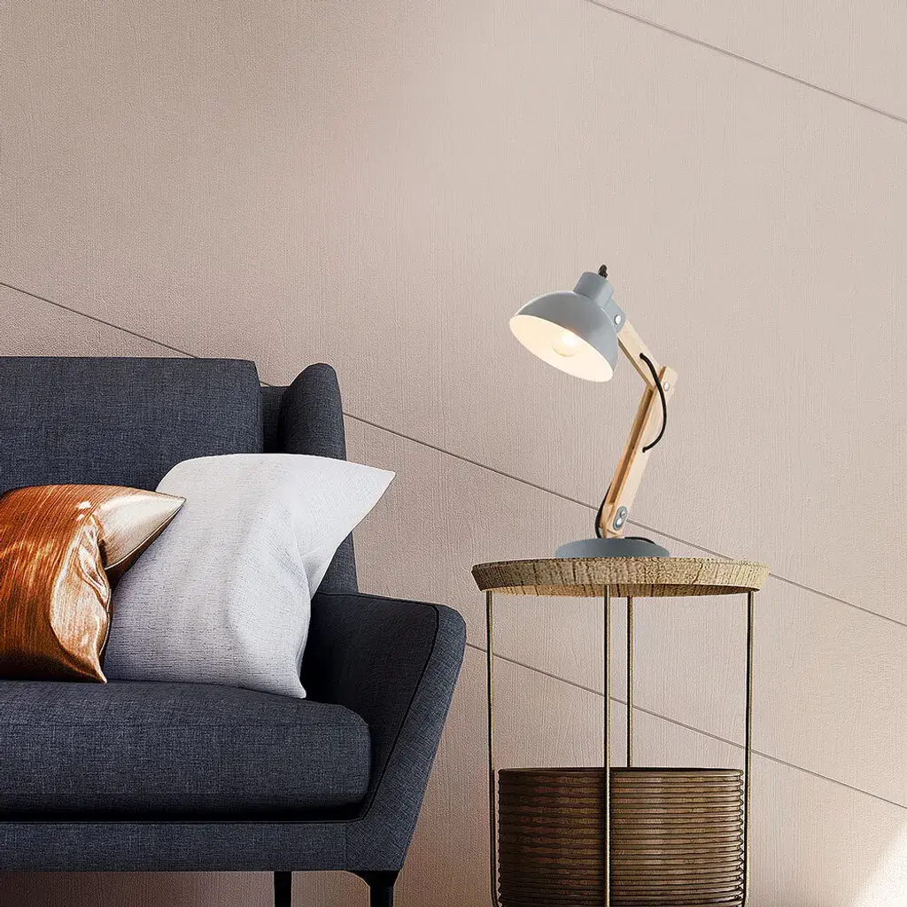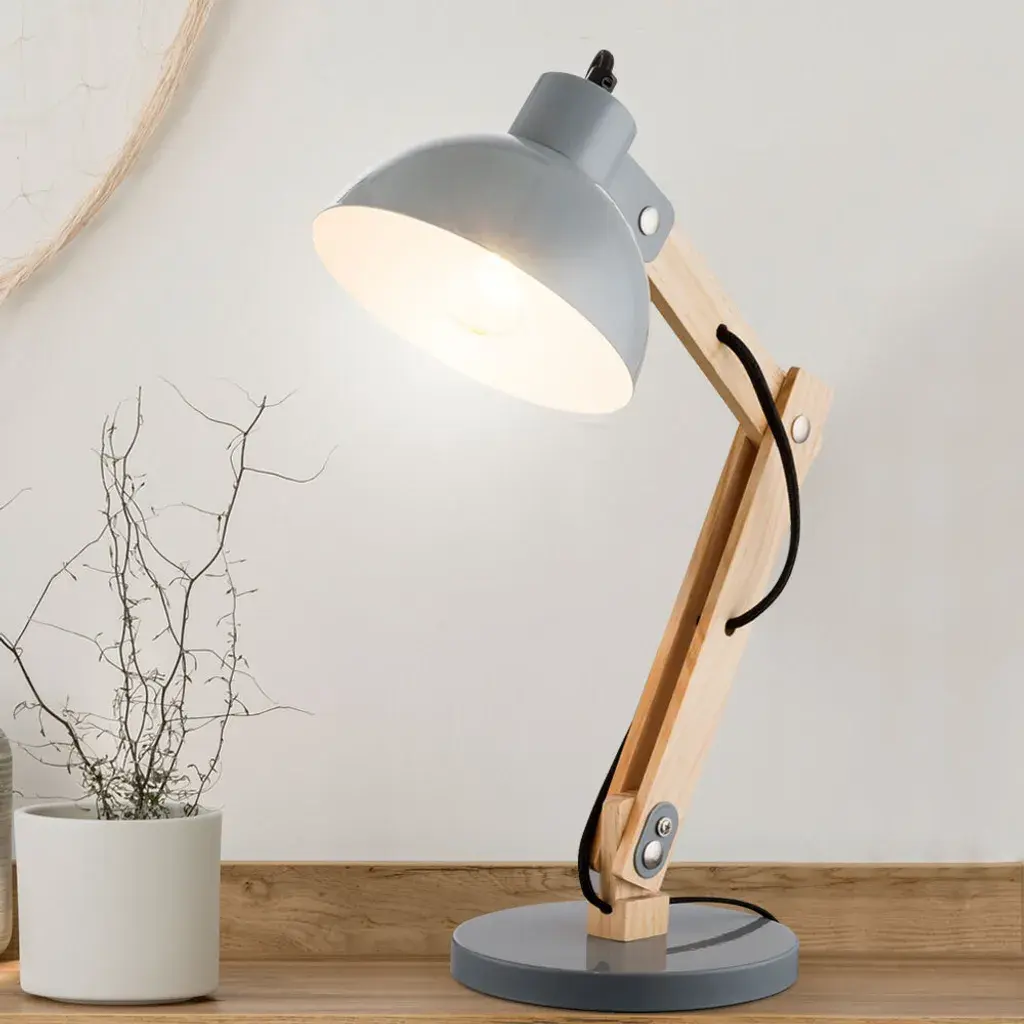 В комплект поставки входит светодиодная лампа Smart RGB. Подробности о лампе - Тип лампы: настольная лампа - Материал: металл, дерево - Цвет: серый, натуральный - Класс защиты: IP20 - Класс защиты: 2 - Точечный подвижный - Длина х ширина х высота в см: 32 х 16 х 45 - Цоколь: В комплект входит 1 лампа E27 - Мощность лампы: 1x 8,5 Вт - Световой поток: 1x 806 люмен - Цвет света: теплый белый - Электропитание: 230 В, 50 Гц - Подробности о лампе - Тип лампы: RGB-LED «Умный дом»