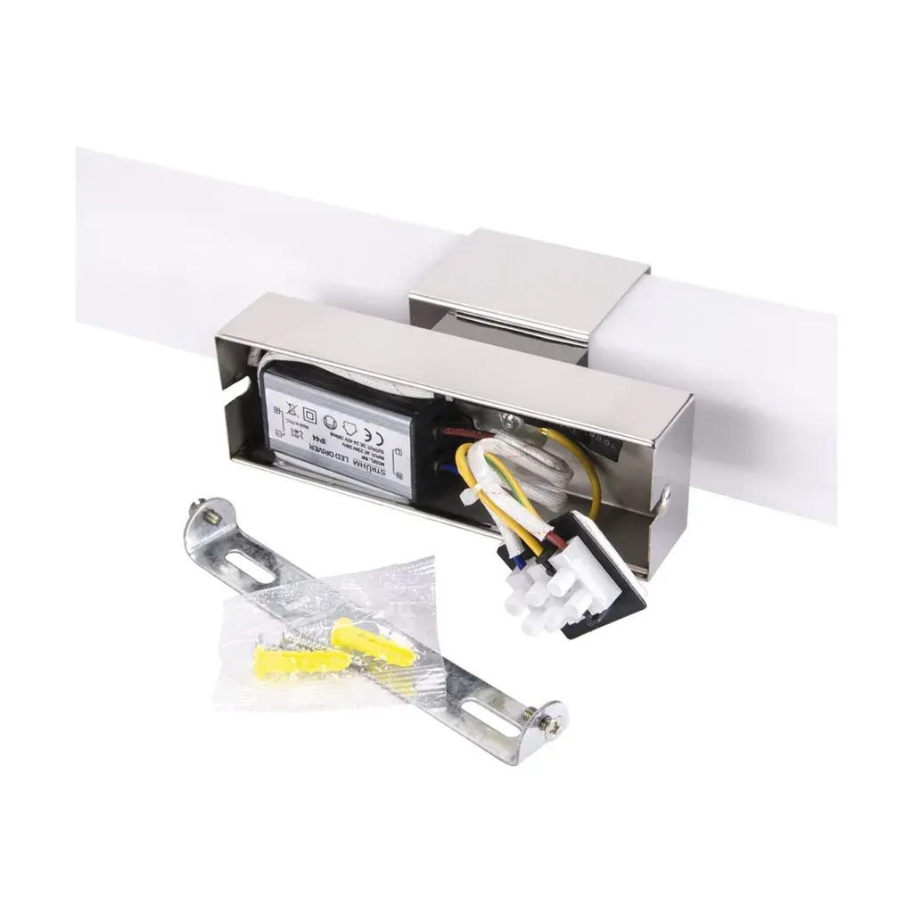 Описание Светодиодный зеркальный светильник XXL для ванной комнаты в хроме и белыйСвет бра для ванной комнаты рассеянный и с низким уровнем бликов — идеально подходит над зеркалом.Вкл. Стационарная светодиодная лампа нейтрального белого света: идеально подходит для нанесения макияжа и бритья.IP44: высокая защита от пара и брызг воды.Световые впечатления 109531
