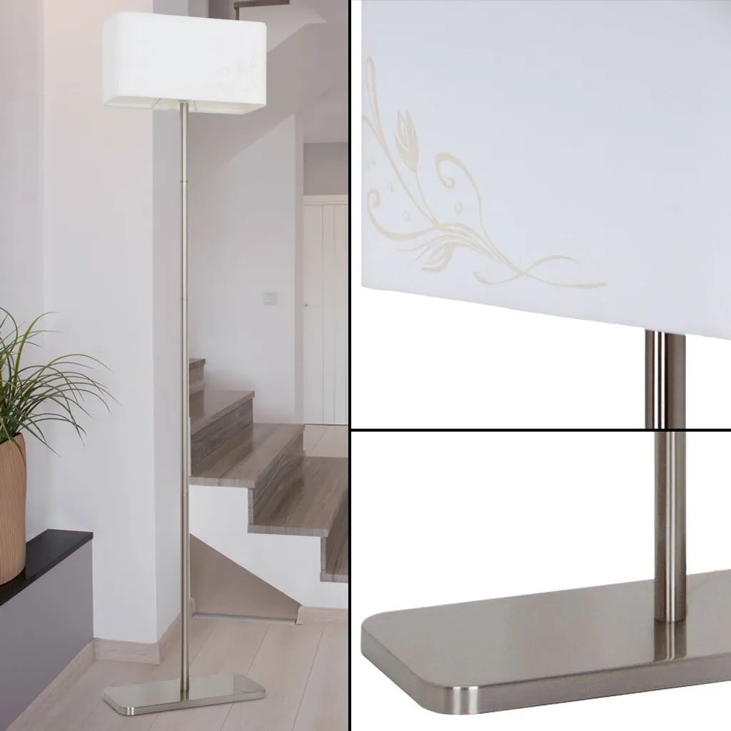 Описание Современный светодиодный торшер с цветочным узором. Этот светильник в простом, но изысканном стиле выглядит особенно элегантно благодаря тканевому абажуру с цветочным узором. Простой дизайн легко впишется в любой стиль интерьера. Торшер можно легко включать и выключать с помощью ножного переключателя.  В комплект поставки входит качественная энергосберегающая светодиодная лампа.