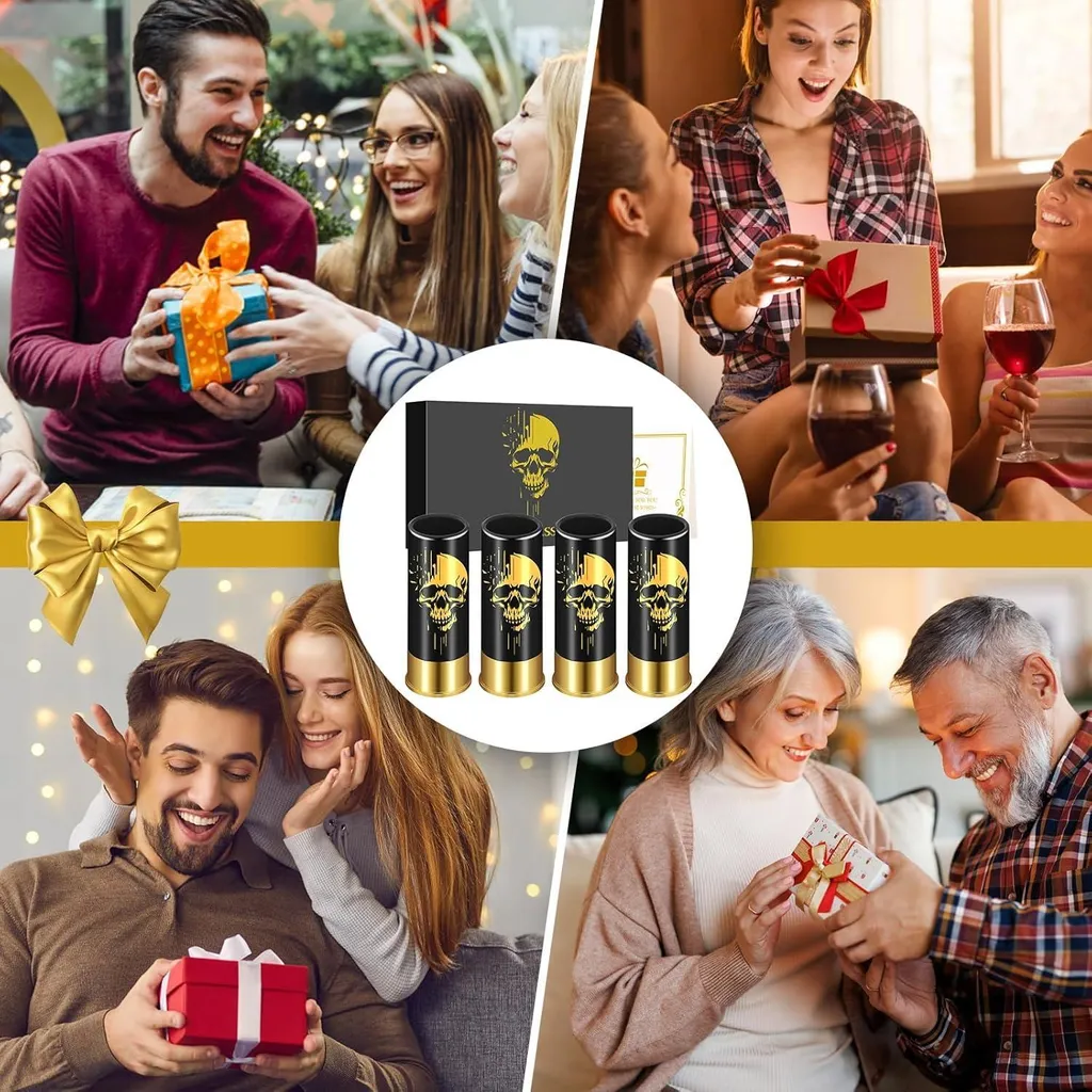 АКСЕССУАРЫ ДЛЯ БАРА: их смелый дизайн и изображения черепа, несомненно, станут центральным элементом вашего бара или вечеринки, придав необычный и незабываемый вид. прикоснуться к любому событию. Эта коллекция стопок, доступная в наборе из 4 штук, идеально подходит для домашнего бара или для подарка нескольким получателям, чтобы вы всегда были готовы к любому празднику. Любите ли вы текилу, виски, водку или другие спиртные напитки, эти стопки 12 GA улучшат ваши впечатления от питья благодаря своему уникальному и привлекательному дизайну. Эти рюмки с черепом, изготовленные из высококачественного пластика, небьющиеся и прочные, поэтому ваши сеансы питья будут стильными и безопасными. В комплект входит подарочная коробка с изображением черепа и пустая поздравительная открытка, которая поможет вам добавить индивидуальности. Дайте волю своему бунтарскому духу с помощью нашего оригинального набора рюмок с изображением черепа; Привлекательный узор в виде черепа на этих пластиковых рюмках объемом 45 мл придаст вашему напитку смелый оттенок.
