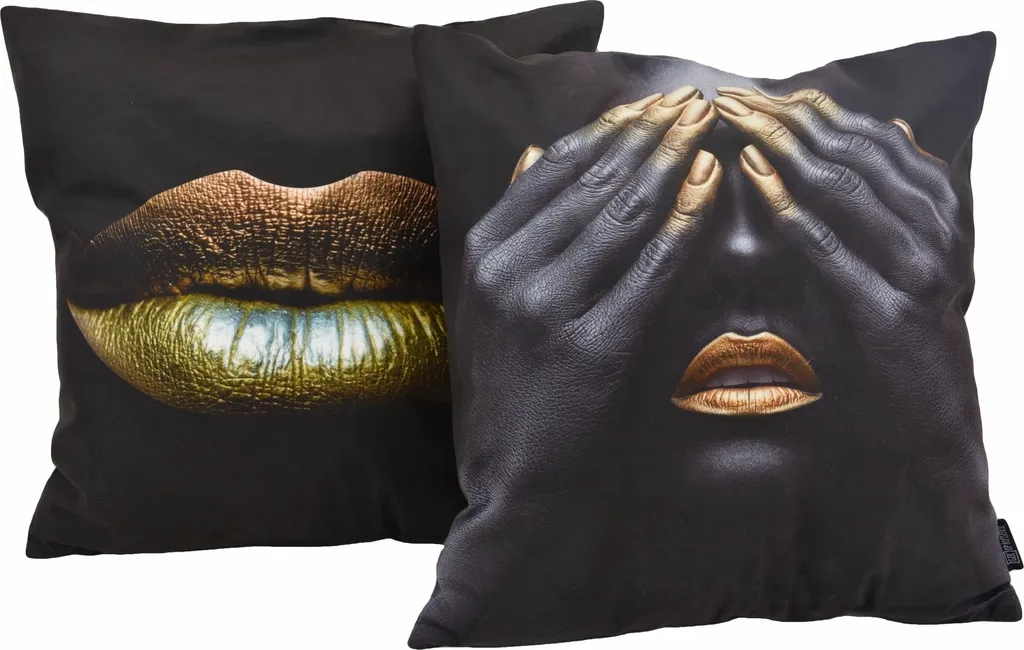 Красивые золотистые губы. Эта женщина явно заявляет о себе. Сочетайте его с декоративной подушкой «Gold Lips» или с другими металлическими цветами.