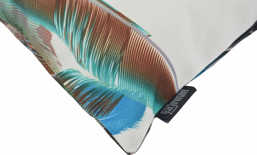 Красивые синие и зеленые павлиньи перья, яркие и шикарные одновременно. Сочетайте этот чехол для уличной подушки с простыми чехлами или другими животными мотивами.