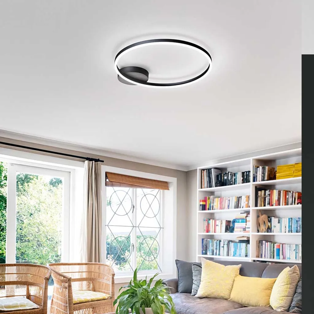 Современный светодиодный потолочный светильник Giotto из черного металла и рассеиватель из метакрилата мощностью 36 Вт