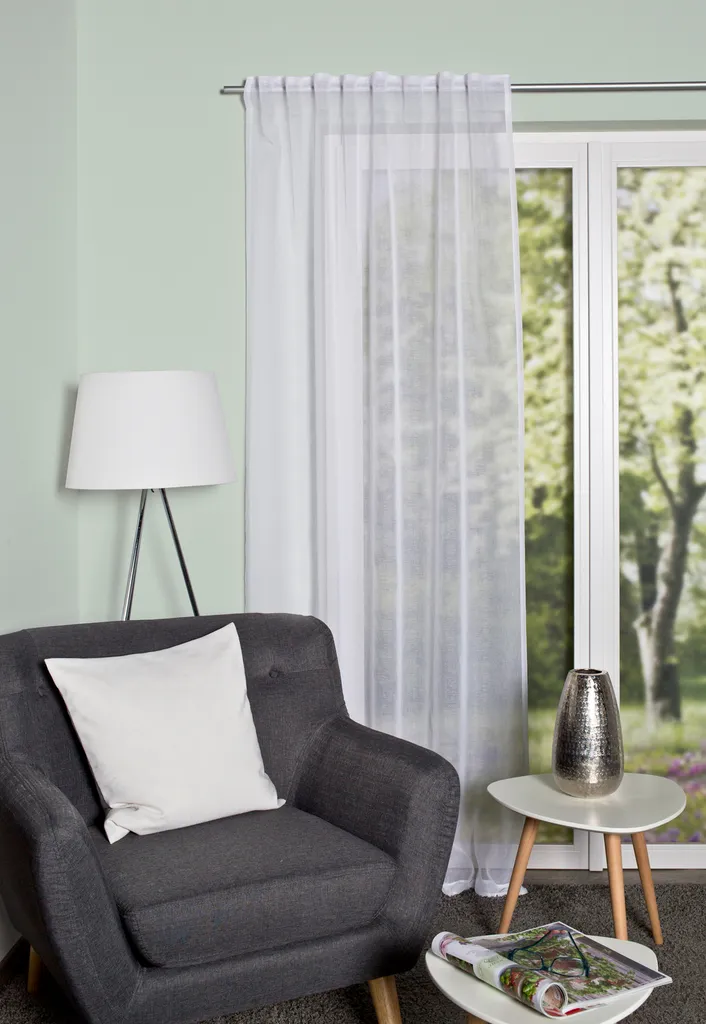 Прозрачная структурированная вуаль однотонных цветов придаст вашему дому воздушную легкость и создаст приятную атмосферу. Легкая структура ткани разрыхляет гладкий материал и придает ему особый вид. Шарф изготовлен из 100% полиэстера, поэтому за ним особенно легко ухаживать, и он долговечен. Подвешивание осуществляется с помощью индивидуальной комбинированной ленты, что позволяет быстро и легко установить.