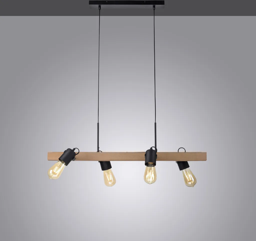 Подвесной светильник CANOP привлекает внимание и находит свое место не только в индустриальном стиле жизни. Сочетание материалов дерева и черного пластика придает подвесному светильнику особый шарм. Лампа поставляется без лампочек. У вас есть возможность оснастить лампу четырьмя лампочками E27 мощностью до 60 Вт. Выберите лампу на свой вкус. Лампы накаливания особенно эффективны, поскольку они видны глазу и являются неотъемлемой частью общего внешнего вида лампы. Подвесной светильник не только декоративен, но и создает уютную атмосферу. Пусть ваш обеденный стол засияет особым блеском или украсит обеденную зону на кухне.