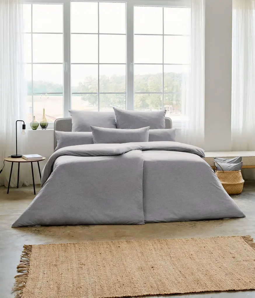 С серым постельным бельем Takoma от Estella вы сможете придать своей спальне атмосферу спокойствия и уюта. Однотонный дизайн в простом цвете привнесет немного спокойствия в ваши четыре стены. Устройтесь поудобнее в дышащем и приятном пододеяльнике из 100-процентного хлопка из мягкого джерси Mako Interlock Jersey и наслаждайтесь максимальным комфортом во время сна.