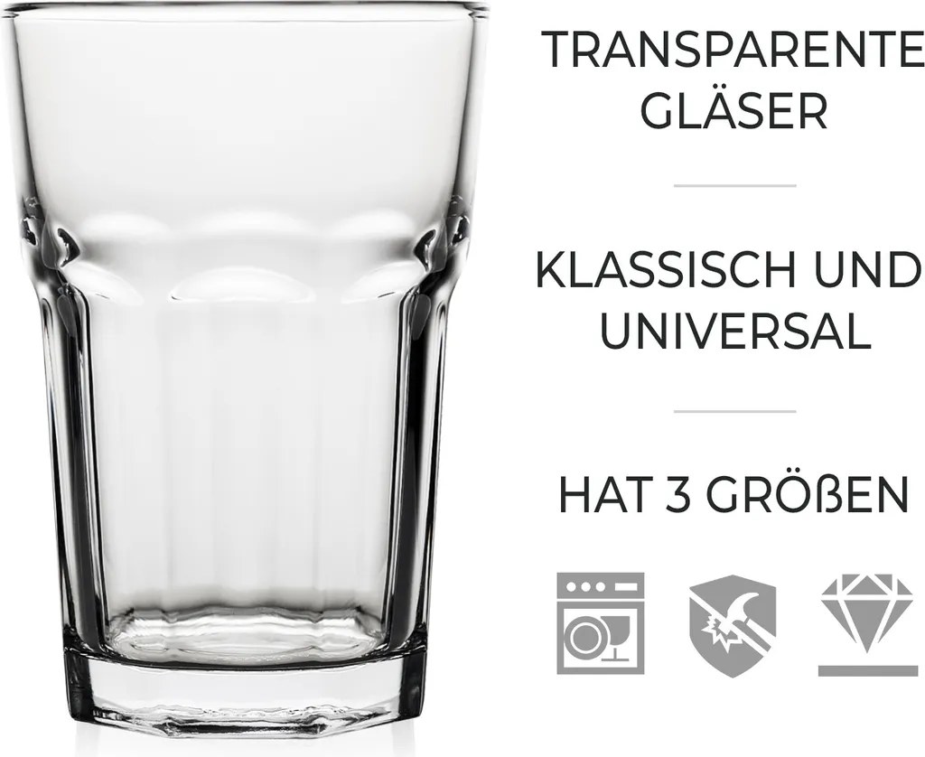 Универсальный дизайн и множество возможностей примененияПрочные очки подходят для повседневной жизни или для вечеринок, а также для предприятий общественного питания, гостиниц и т. д. рестораны. Наши очки полностью прозрачны и красиво блестят. Чистить очень легко: стаканы для воды можно мыть в посудомоечной машине. Их можно использовать как стаканы для воды, стаканы для латте макиато или как коктейльные бокалы для красочных лонг-дринков.