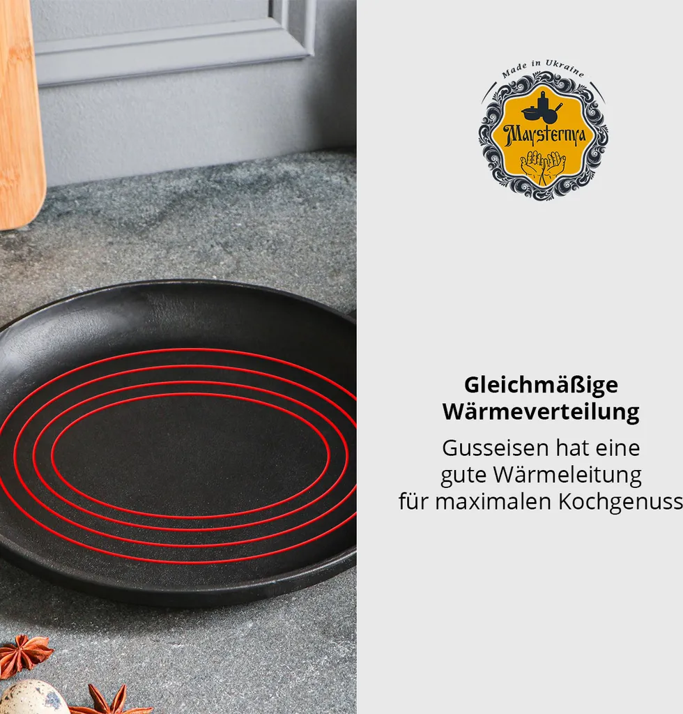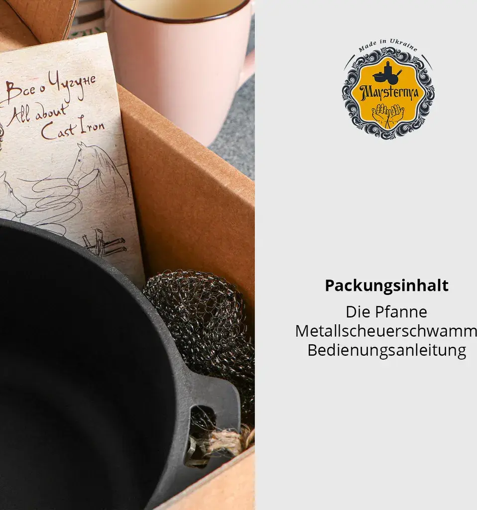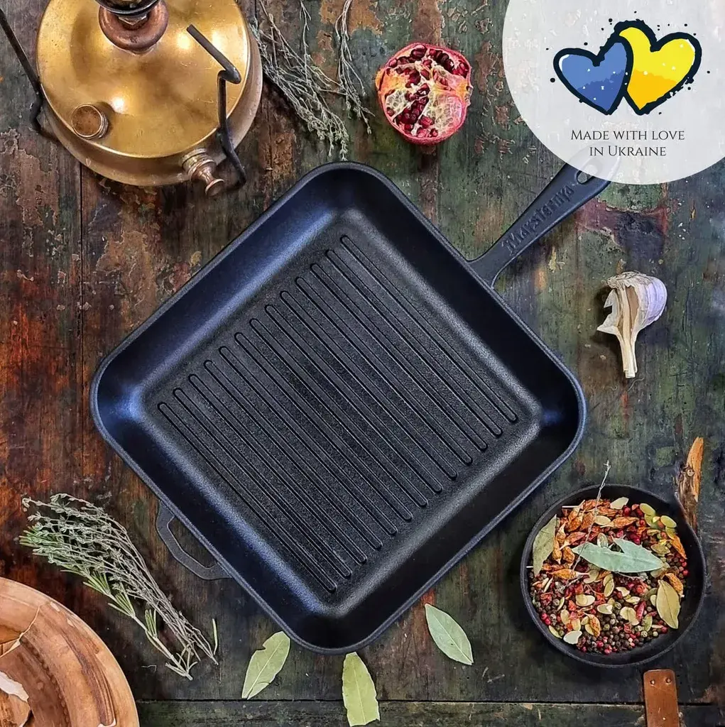 Сковорода-гриль «МАЙСТЕРНЯ» изготовлена из высококачественного чугуна, что обеспечивает отличное сохранение и равномерное распределение тепла. Это позволяет Для идеальной прожарки продуктов на гриле и создания характерных следов гриля, которые все так ценят.