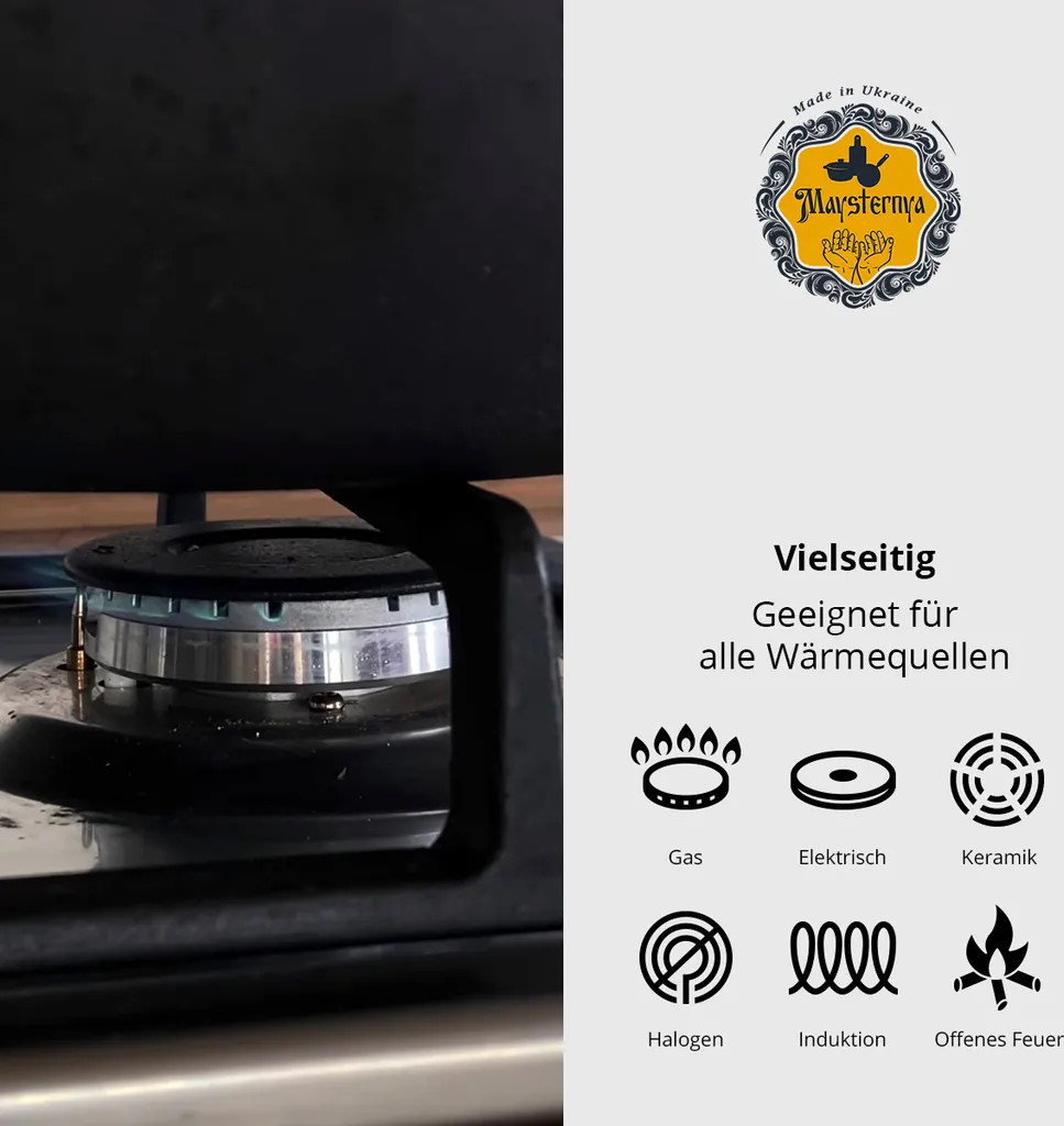 Матово-чёрная поверхность и прочная металлическая ручка придают сковороде-гриль MAYSTERNYA современный и вневременной вид. Это делает её не только функциональным, но и эстетически привлекательным элементом кухонного гарнитура.