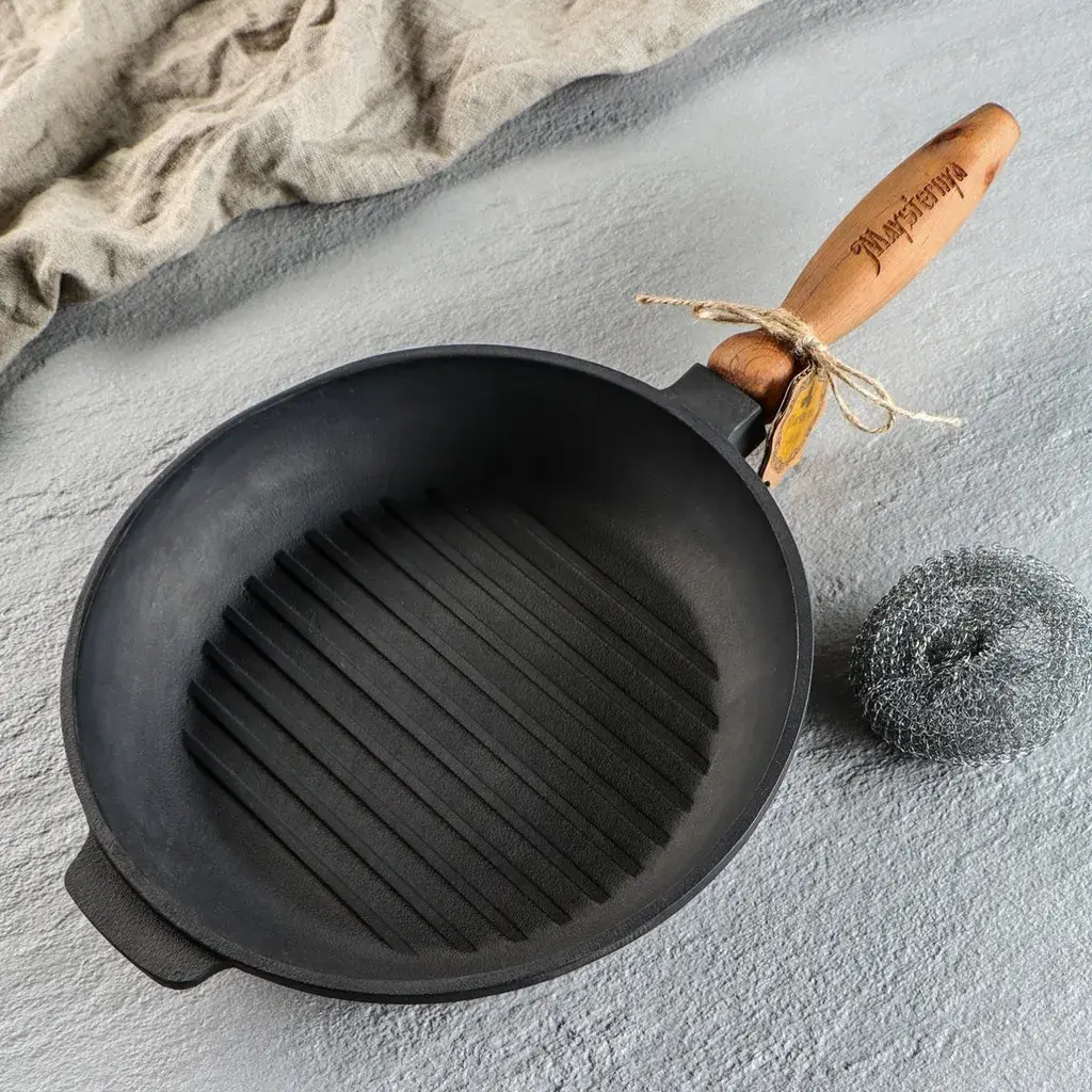 Чугунная сковорода-гриль MAYSTERNYA ø 24 х 4 см с деревянной ручкой – незаменимый аксессуар для каждой кухни и каждого гриля. Благодаря прочной конструкции, универсальному использованию, стильному дизайну и простоте ухода эта сковорода-гриль предлагает все необходимое для идеального приготовления пищи. Добавьте эту высококачественную чугунную посуду в свой кухонный арсенал и наслаждайтесь ее непревзойденной производительностью и универсальностью.